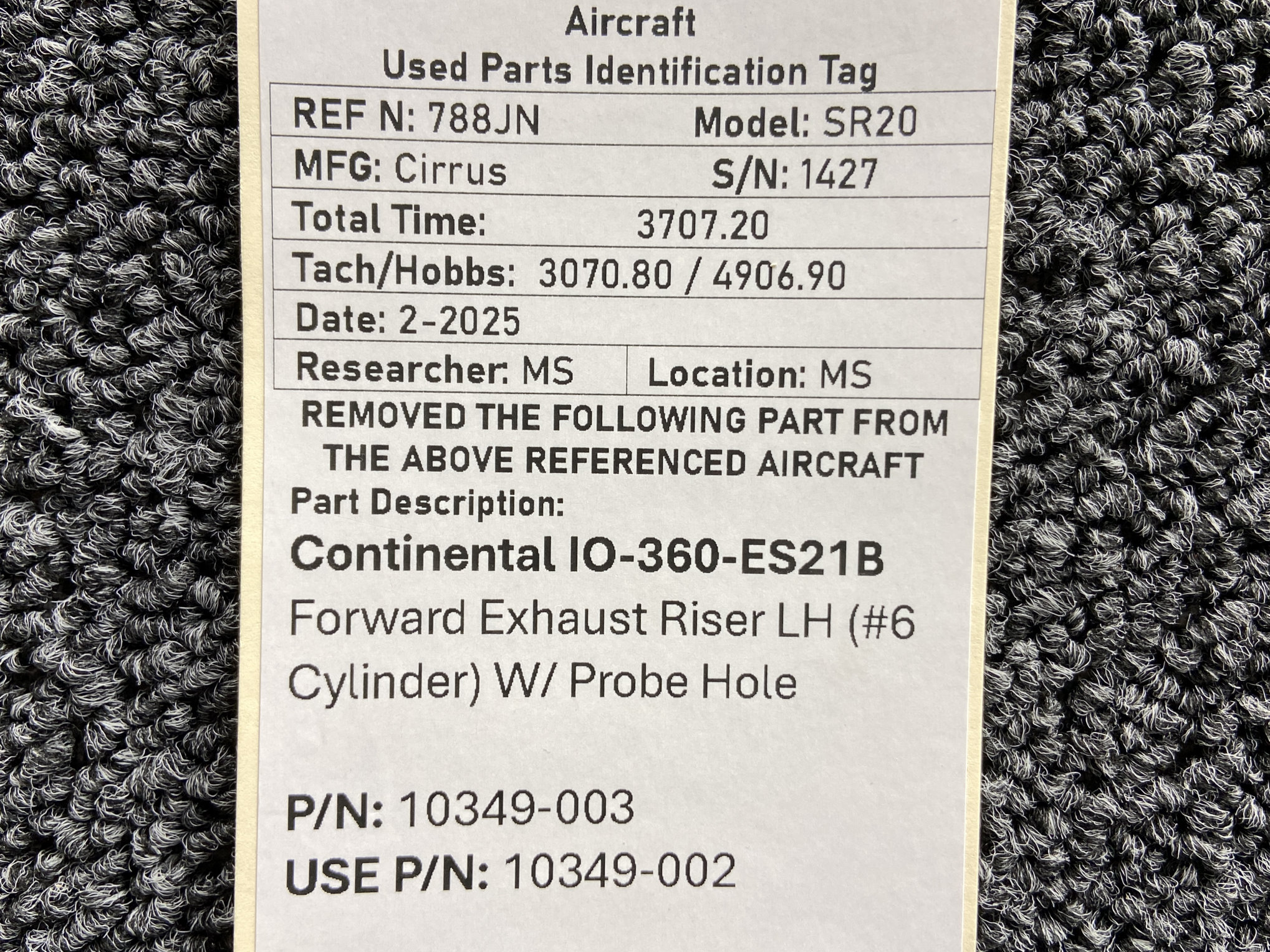 - Removed from Continental IO-360-ES