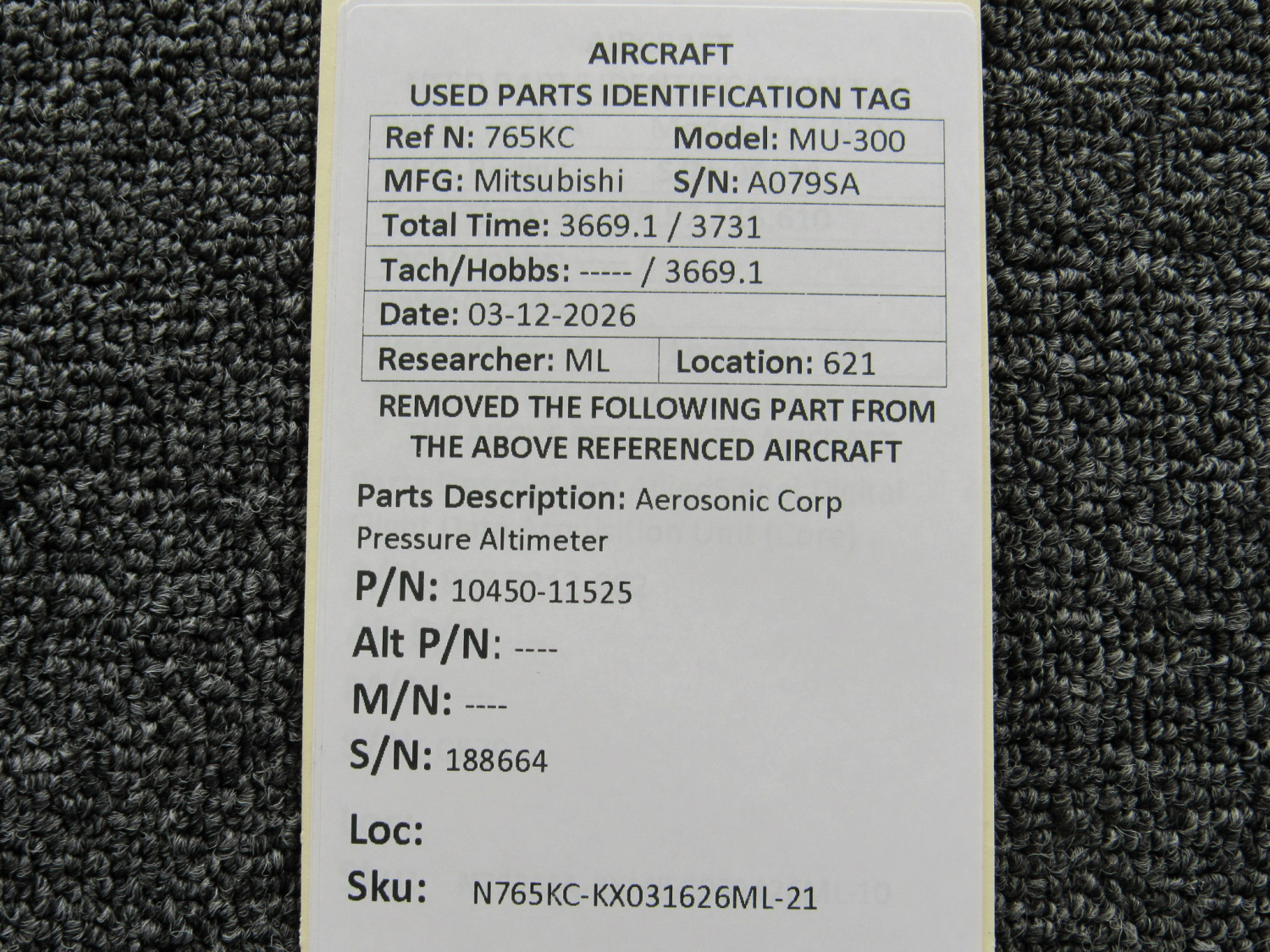 Every part is carefully inspected throughout our process and several times before it goes online. Most items are sold as-removed, just as they came off the aircraft. These parts are not functionally tested. What we do provide is clear photos, full traceability when available, pricing that reflects the as-removed condition, and a no-nonsense 90-day return window.
