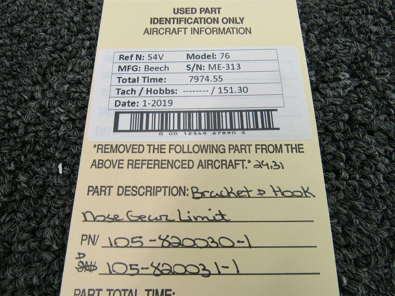 105-820030-1 / 105-820031-1 Beech 76 Bracket & Hook Nose Gear Limit