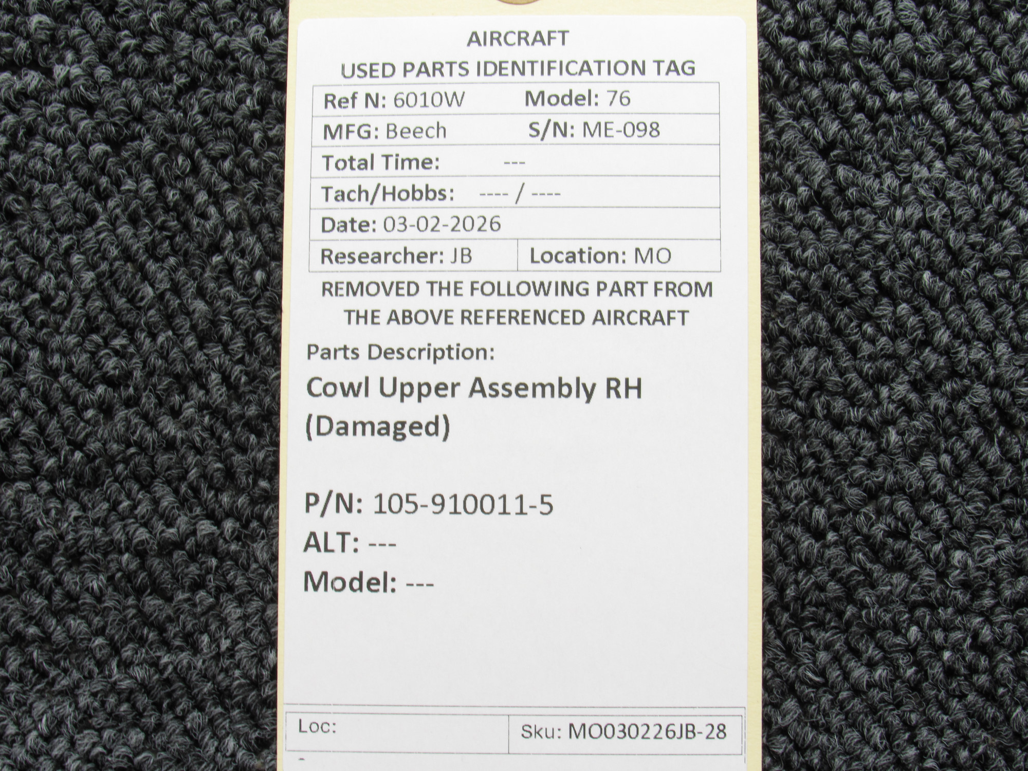Every part is carefully inspected throughout our process and several times before it goes online. Most items are sold as-removed, just as they came off the aircraft. These parts are not functionally tested. What we do provide is clear photos, full traceability when available, pricing that reflects the as-removed condition, and a no-nonsense 90-day return window.