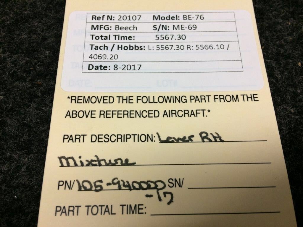 105-940000-17 Beech BE-76 Lever Mixture RH