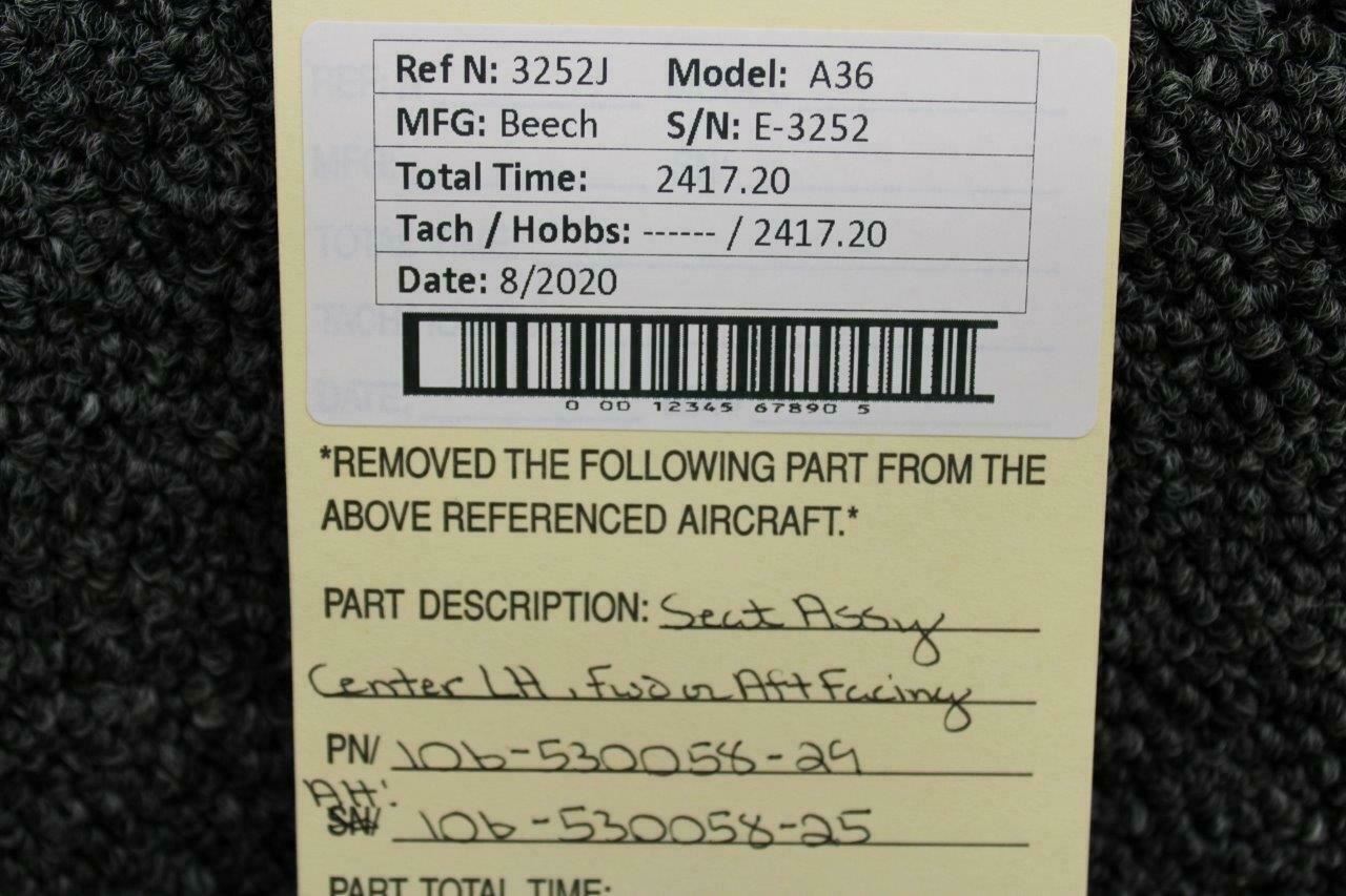 106-530058-29 (Alt: 106-530058-25) Beech A36 Seat Assy Center LH W/ Seat Belt