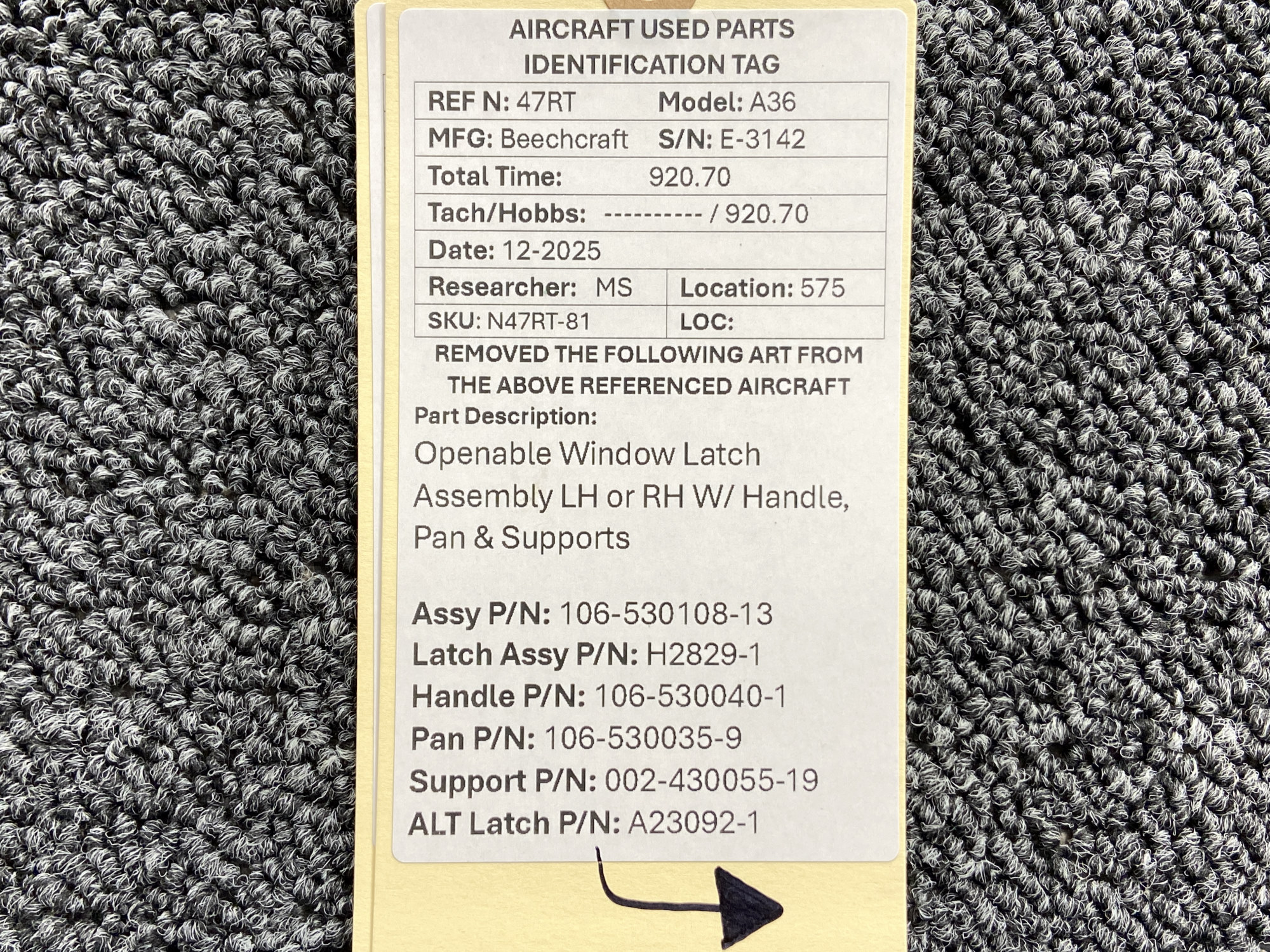 - Handle Assembly Part Number: 106-530040-1