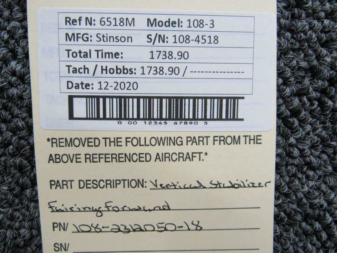 108-2312050-18 Stinson 108-3 Vertical Stabilizer Fairing Forward
