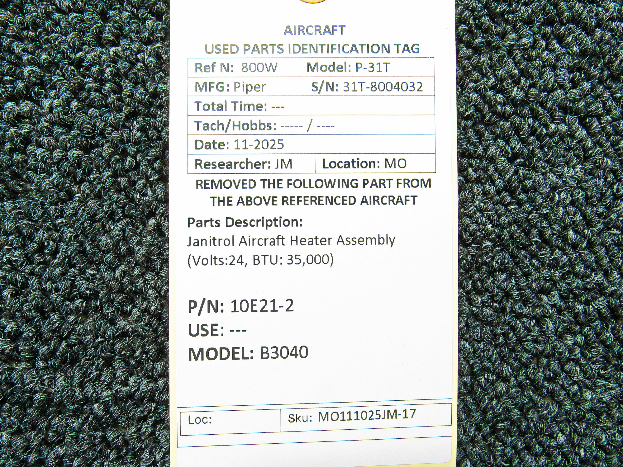 Unless specifically noted, most of our used airplane parts are sold in the condition they were removed, which means you should expect the usual signs of wear and tear.