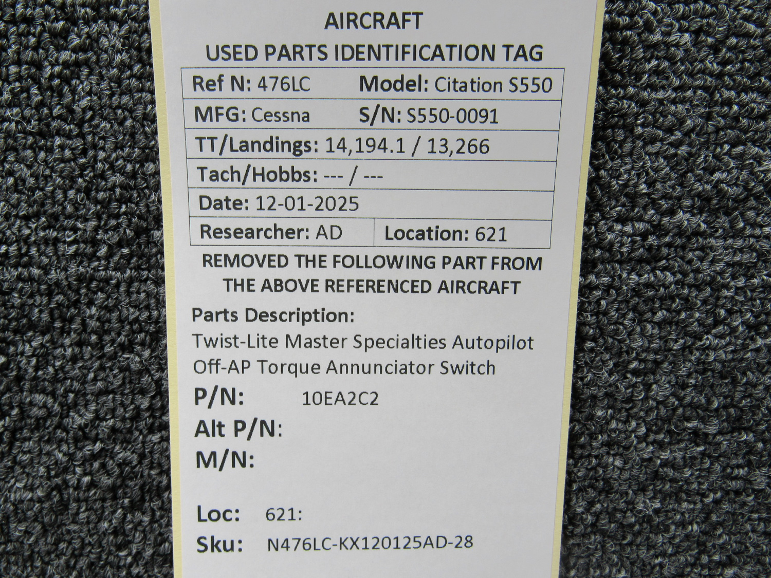 Every part is carefully inspected throughout our process and several times before it goes online. Most items are sold as-removed, just as they came off the aircraft. These parts are not functionally tested. What we do provide is clear photos, full traceability when available, pricing that reflects the as-removed condition, and a no-nonsense 90-day return window.