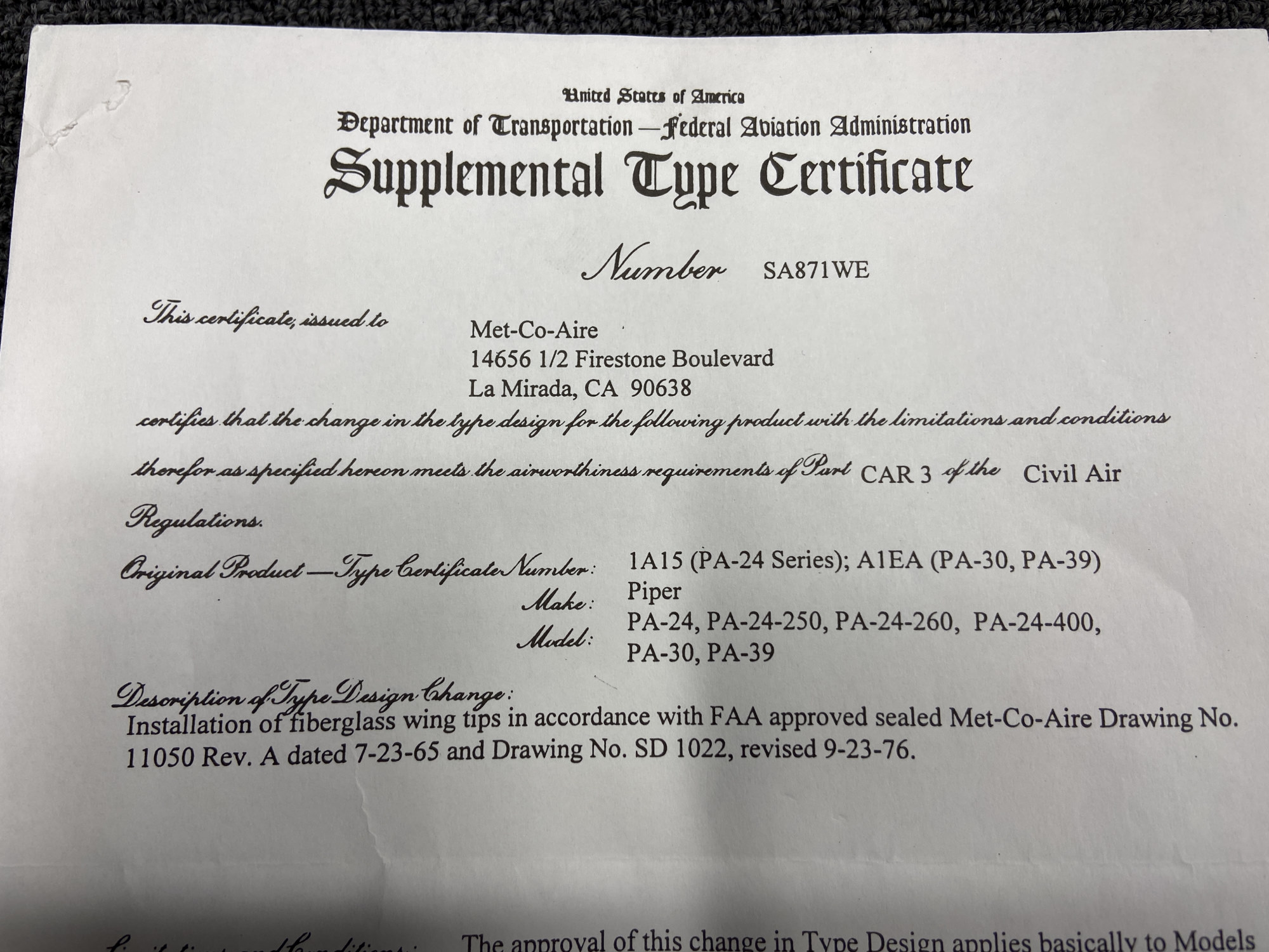 - STC Number: SA871WE