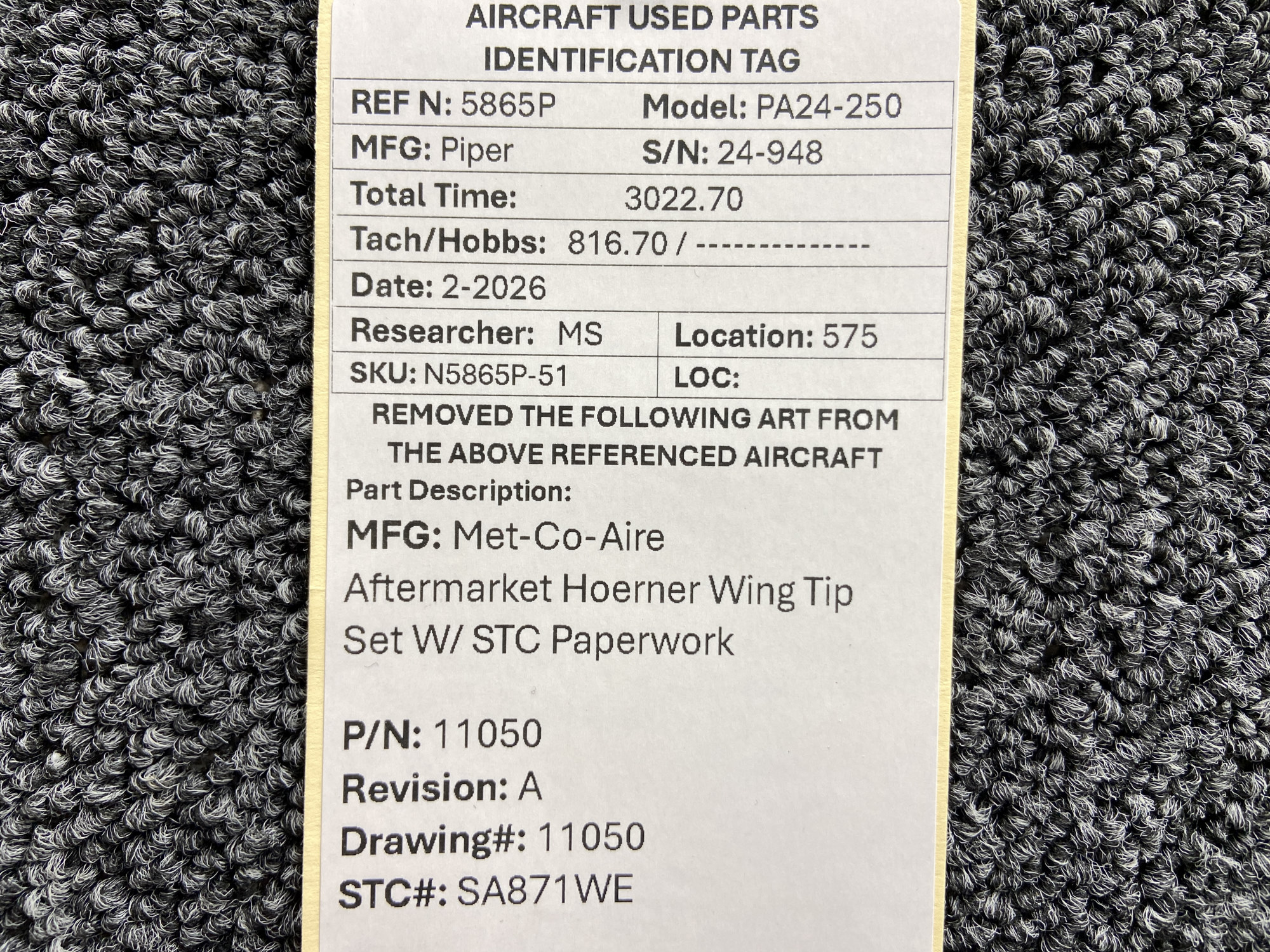 - Comes with STC paperwork