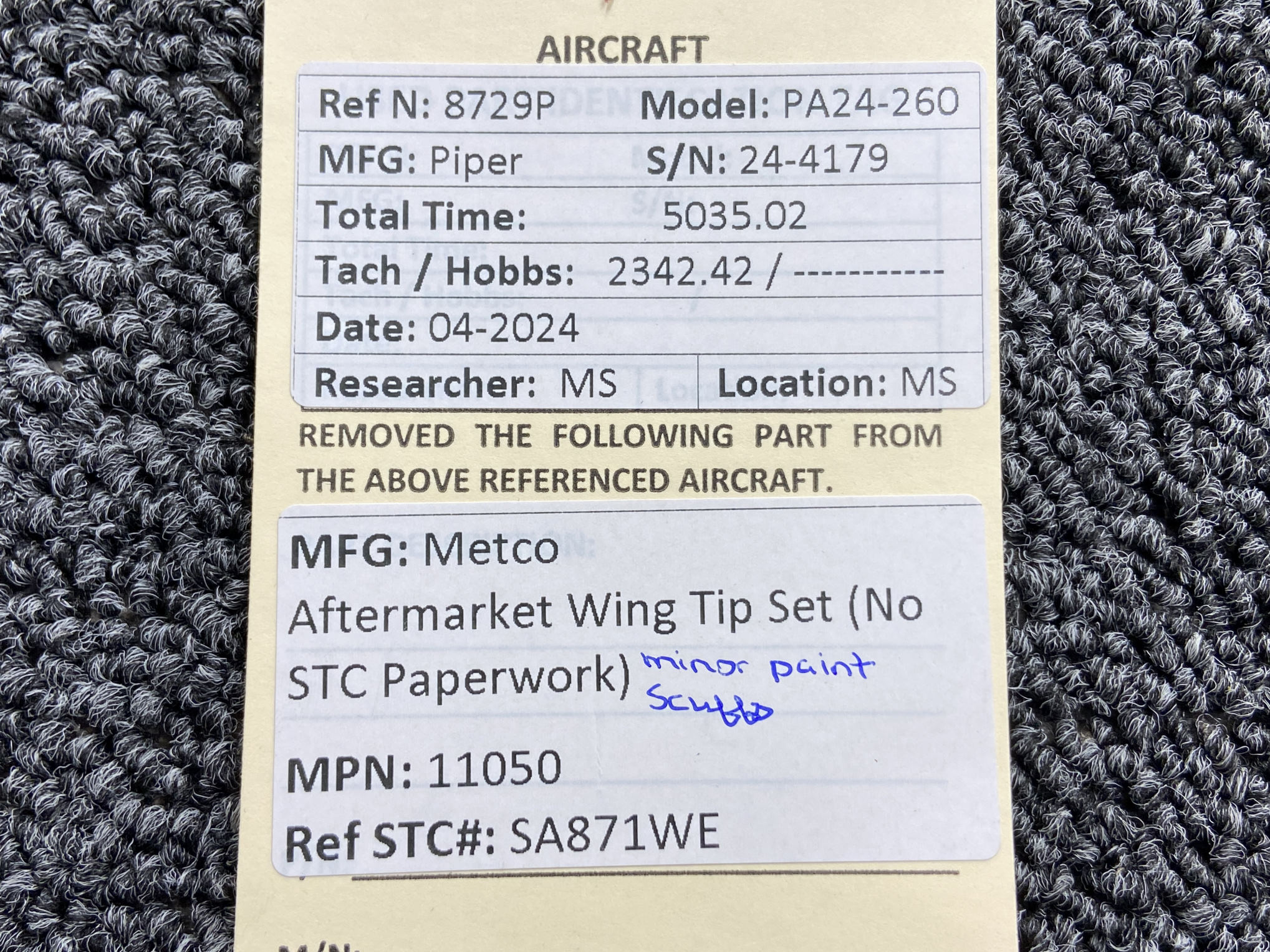 - Does NOT have STC paperwork