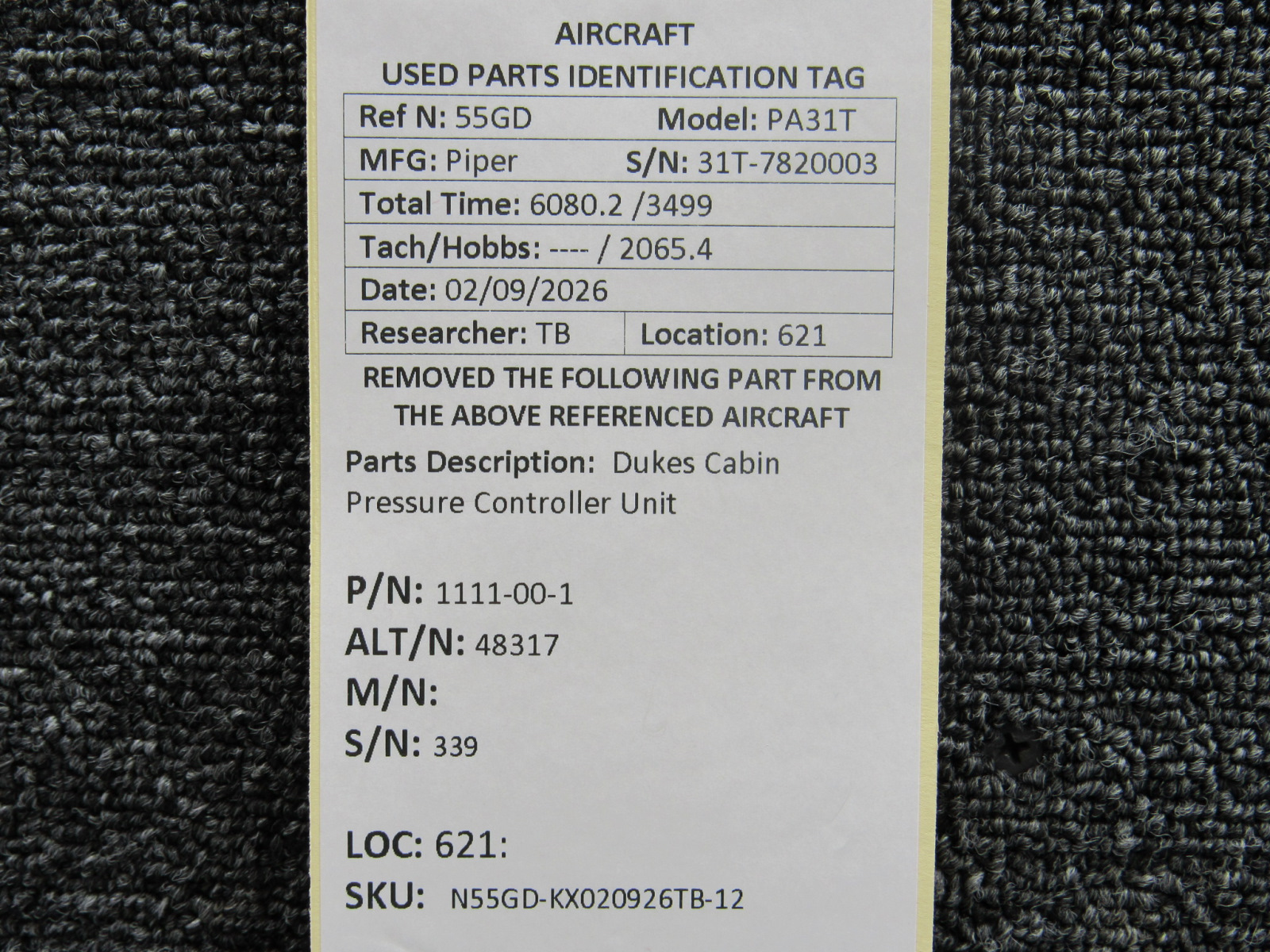 Unless specifically noted, most of our used airplane parts are sold in the condition they were removed, which means you should expect the usual signs of wear and tear.