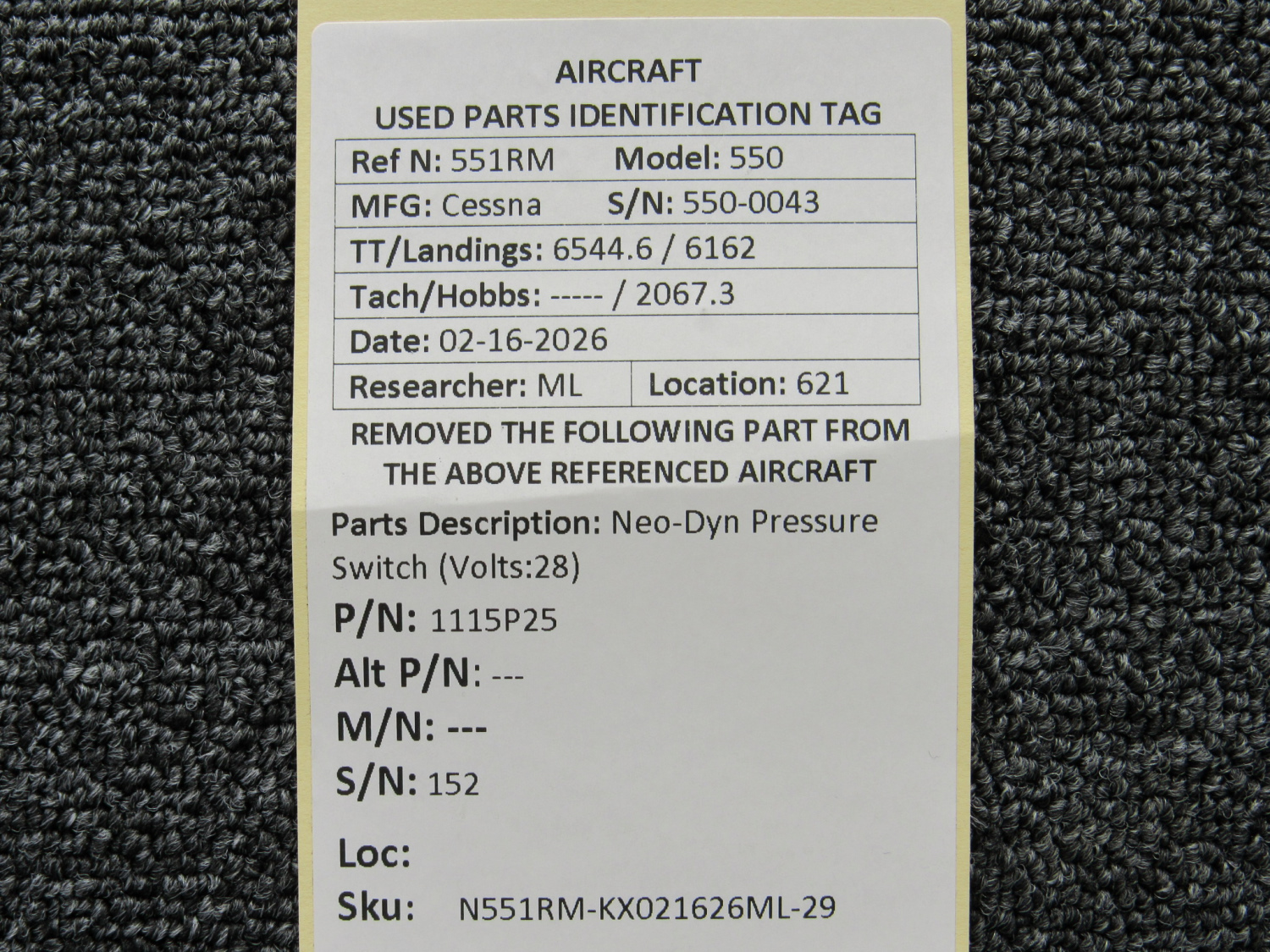 Unless specifically noted, most of our used airplane parts are sold in the condition they were removed, which means you should expect the usual signs of wear and tear.
