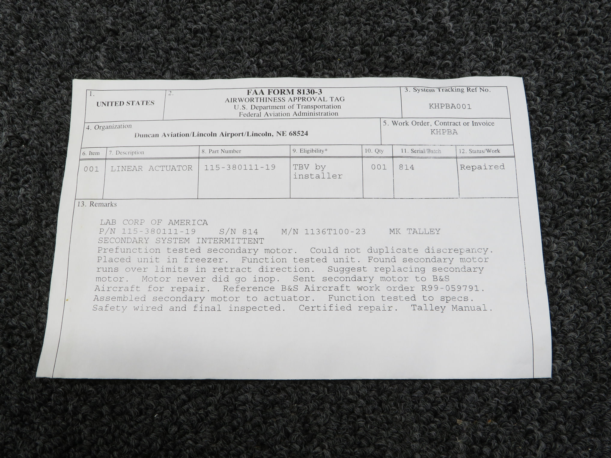 Unless specifically noted, most of our used airplane parts are sold in the condition they were removed, which means you should expect the usual signs of wear and tear.