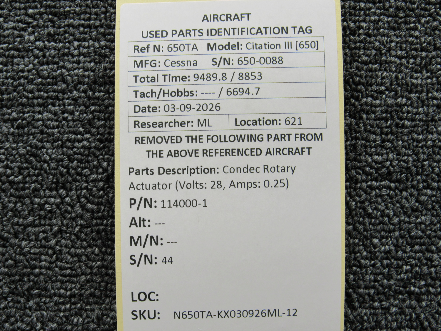 Every part is carefully inspected throughout our process and several times before it goes online. Most items are sold as-removed, just as they came off the aircraft. These parts are not functionally tested. What we do provide is clear photos, full traceability when available, pricing that reflects the as-removed condition, and a no-nonsense 90-day return window.