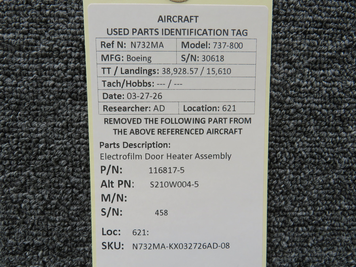 Every part is carefully inspected throughout our process and several times before it goes online. Most items are sold as-removed, just as they came off the aircraft. These parts are not functionally tested. What we do provide is clear photos, full traceability when available, pricing that reflects the as-removed condition, and a no-nonsense 90-day return window.