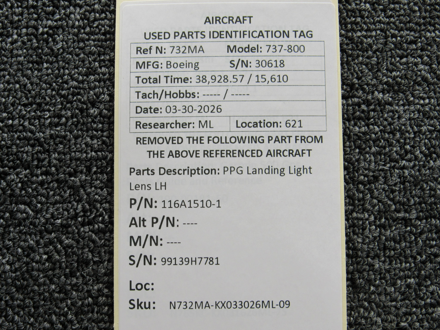 Every part is carefully inspected throughout our process and several times before it goes online. Most items are sold as-removed, just as they came off the aircraft. These parts are not functionally tested. What we do provide is clear photos, full traceability when available, pricing that reflects the as-removed condition, and a no-nonsense 90-day return window.
