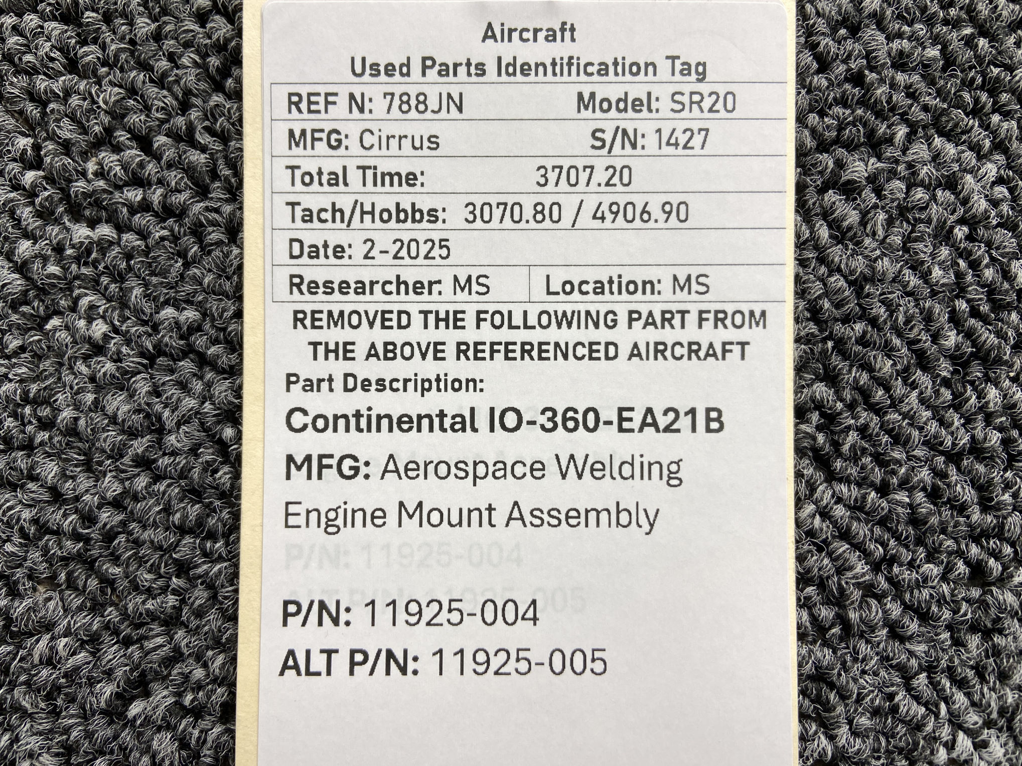 - Removed from Continental IO-360-ES21B