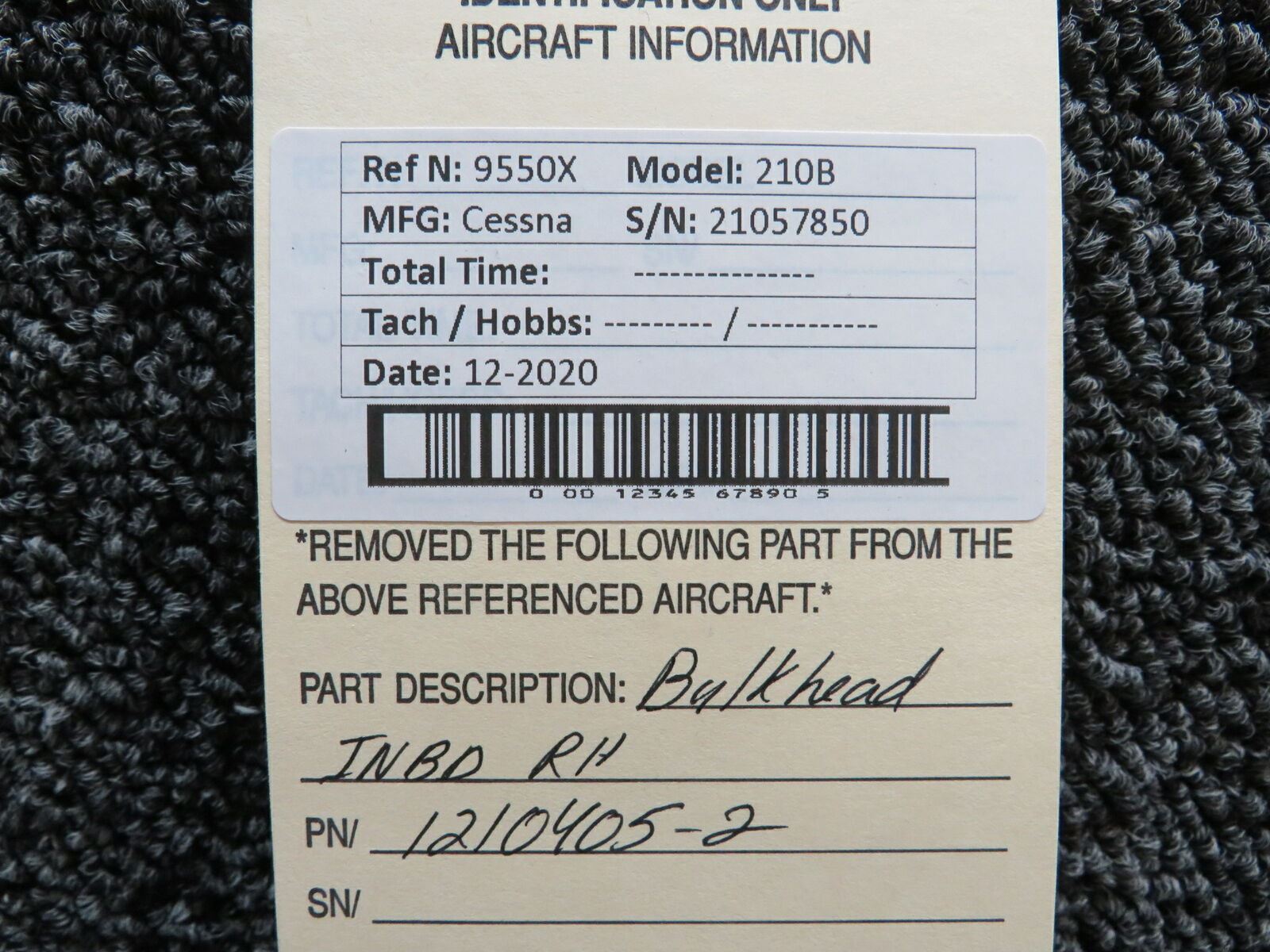 1210405-2 Cessna 210B Bulkhead INBD RH