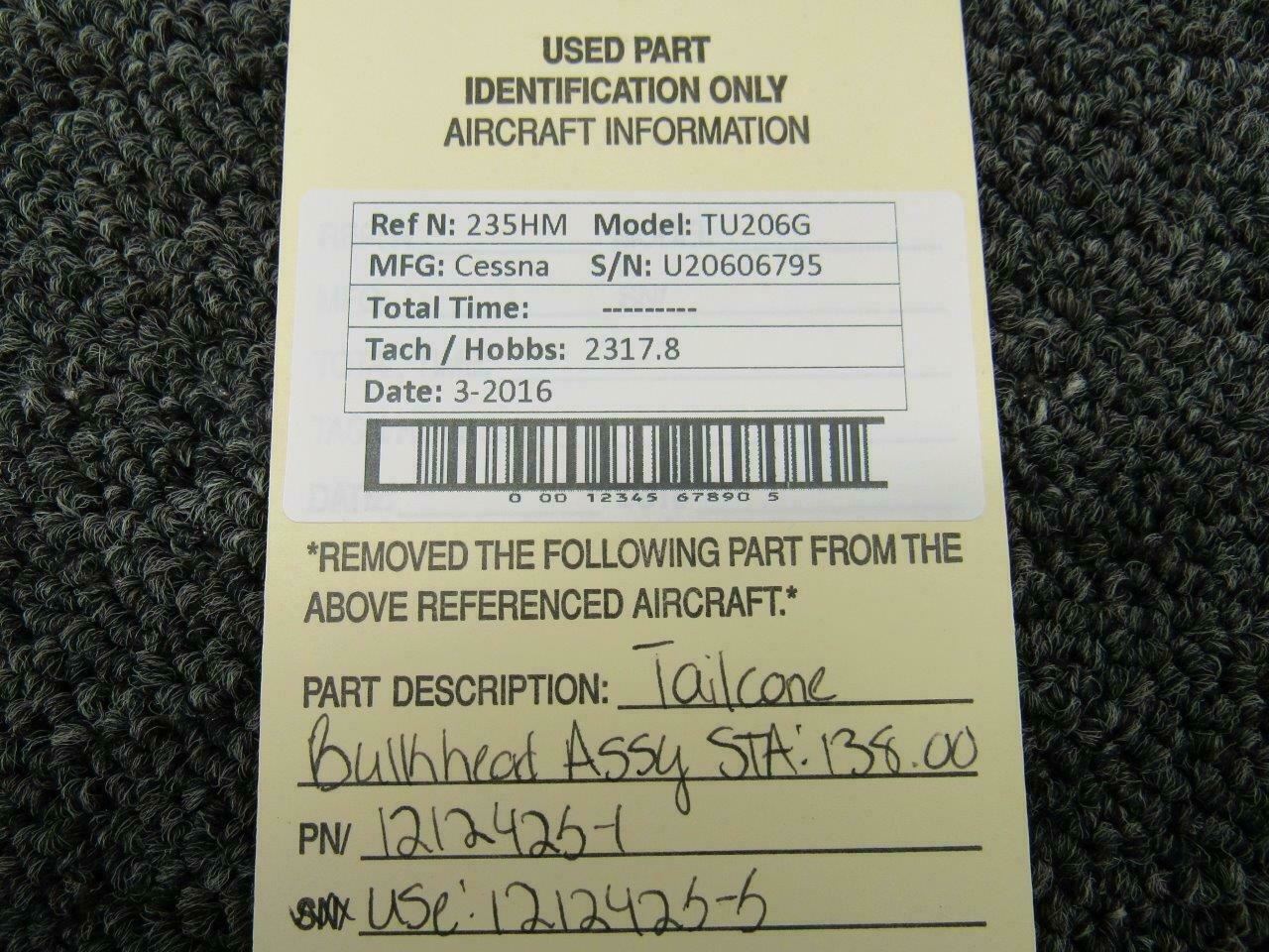 1212425-1 (Use: 1212425-5) Cessna TU206G Tailcone Bulkhead Assy STA 138.00
