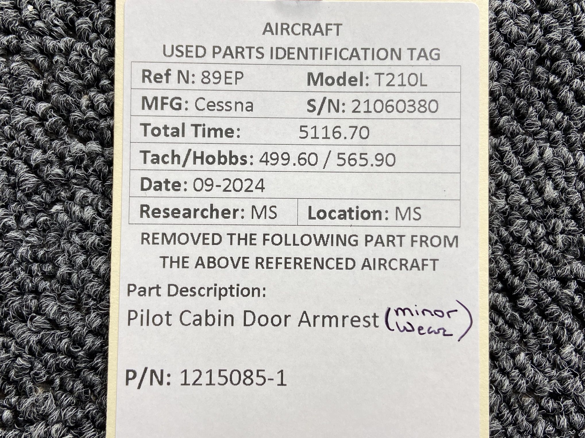 - Minor damage to forward armrest, see pictures for more detail
