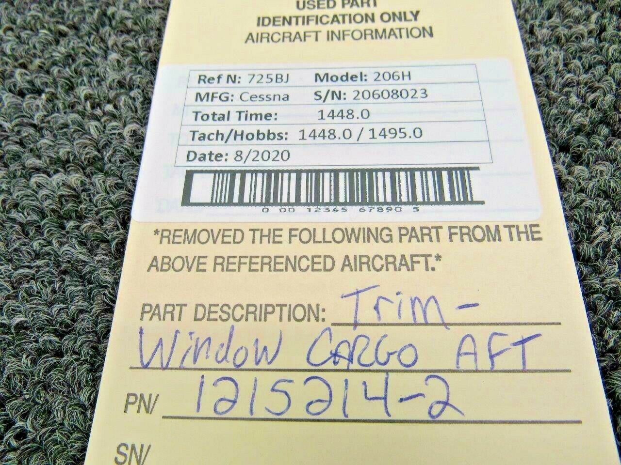 1215214-2 Cessna 206H Trim Window Cargo Aft