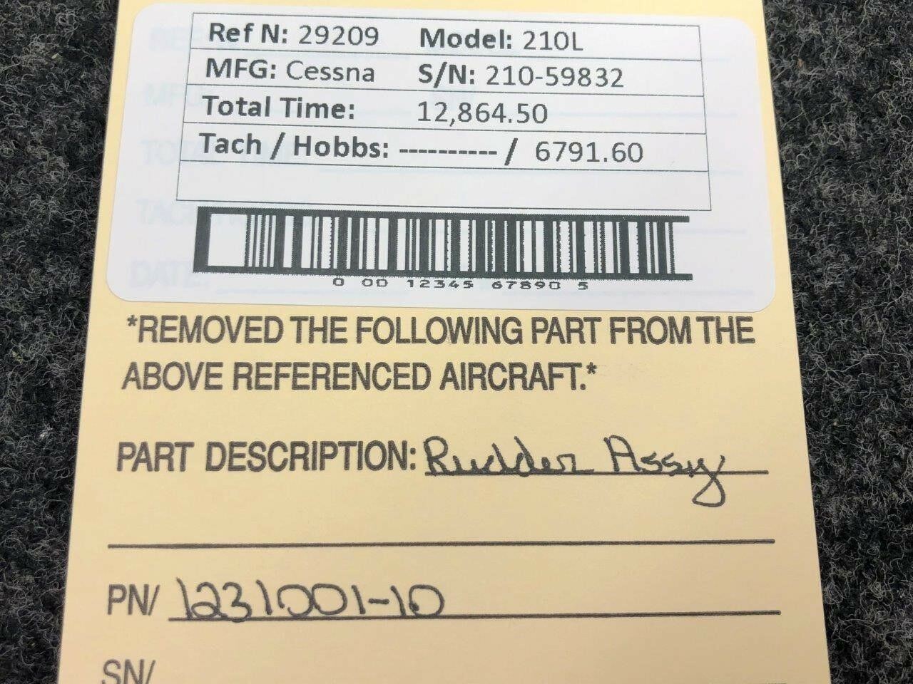 1231001-10 Cessna 210L Rudder Assembly
