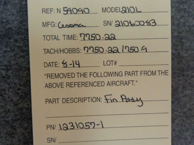 1231057-1 Cessna 210L Fin Assy Vertical