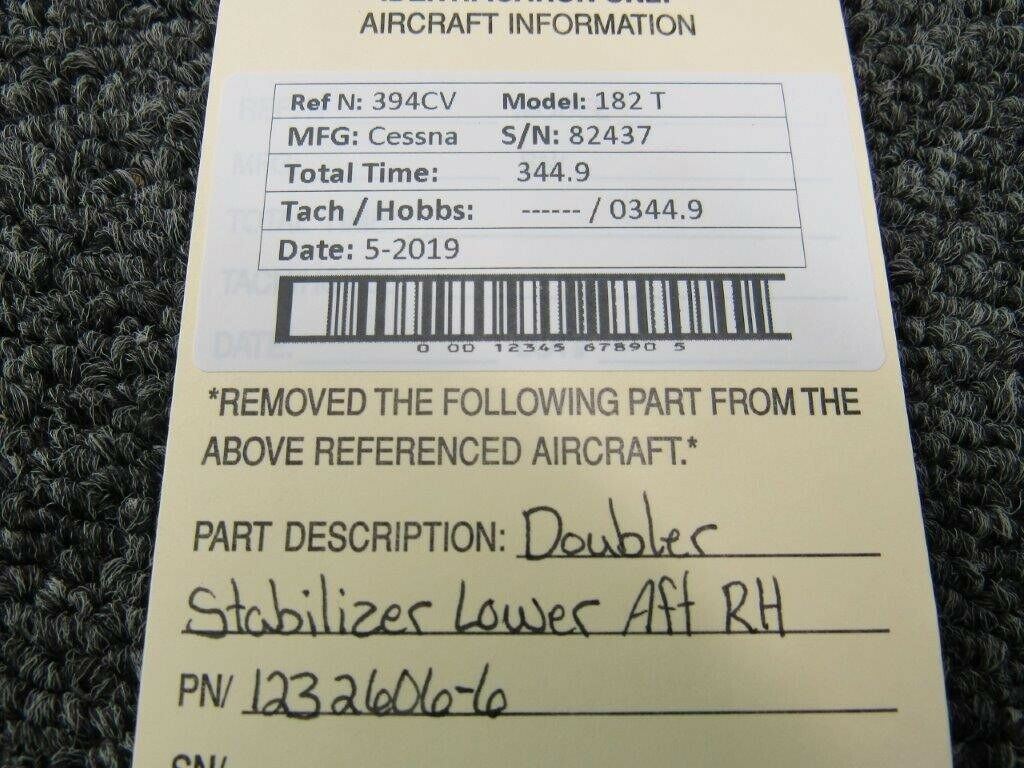 1232606-6 Cessna 182T Doubler Stabilizer Lower Aft RH