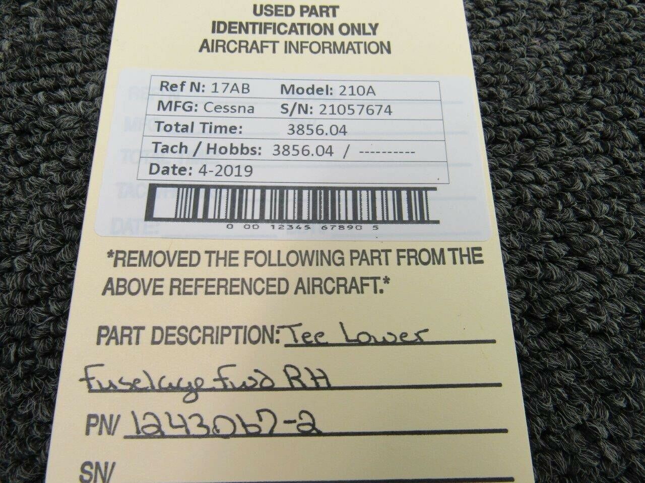 1243067-2 Cessna 210A Tee Lower Fuselage Forward RH