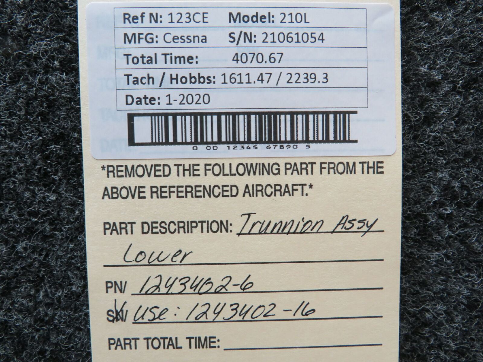 1243402-6 (USE: 1243402-16) Cessna 210L Trunnion Assembly Lower