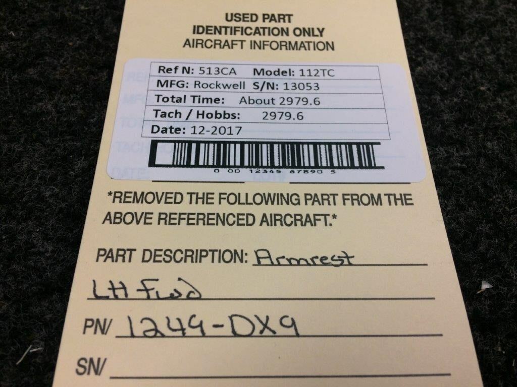 1249-DX9 Rockwell 112 Armrest Assy LH Fwd