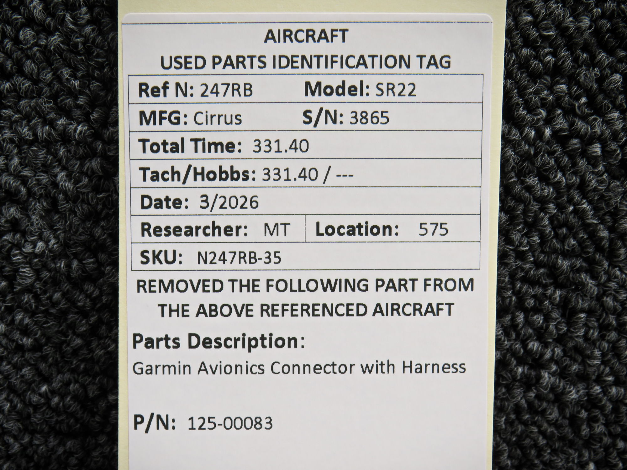 Every part is carefully inspected throughout our process and several times before it goes online. Most items are sold as-removed, just as they came off the aircraft. These parts are not functionally tested. What we do provide is clear photos, full traceability when available, pricing that reflects the as-removed condition, and a no-nonsense 90-day return window.