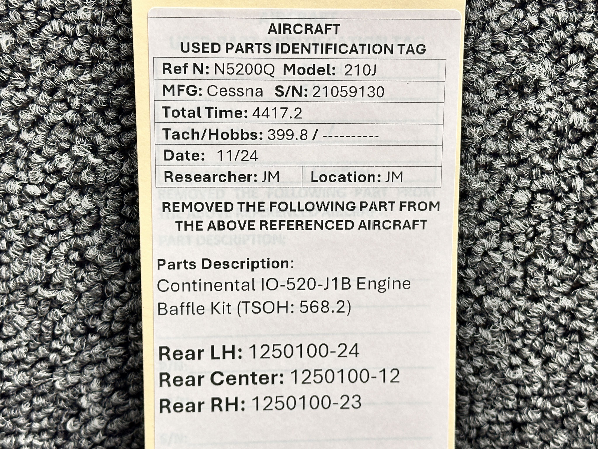 - Removed From: Continental IO-520-J1B