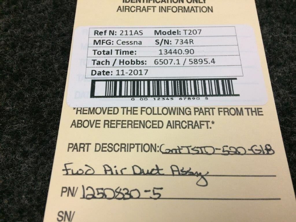 1250830-5 Cessna T207 Continental TSIO-520-G1B Air Duct Assy Fwd