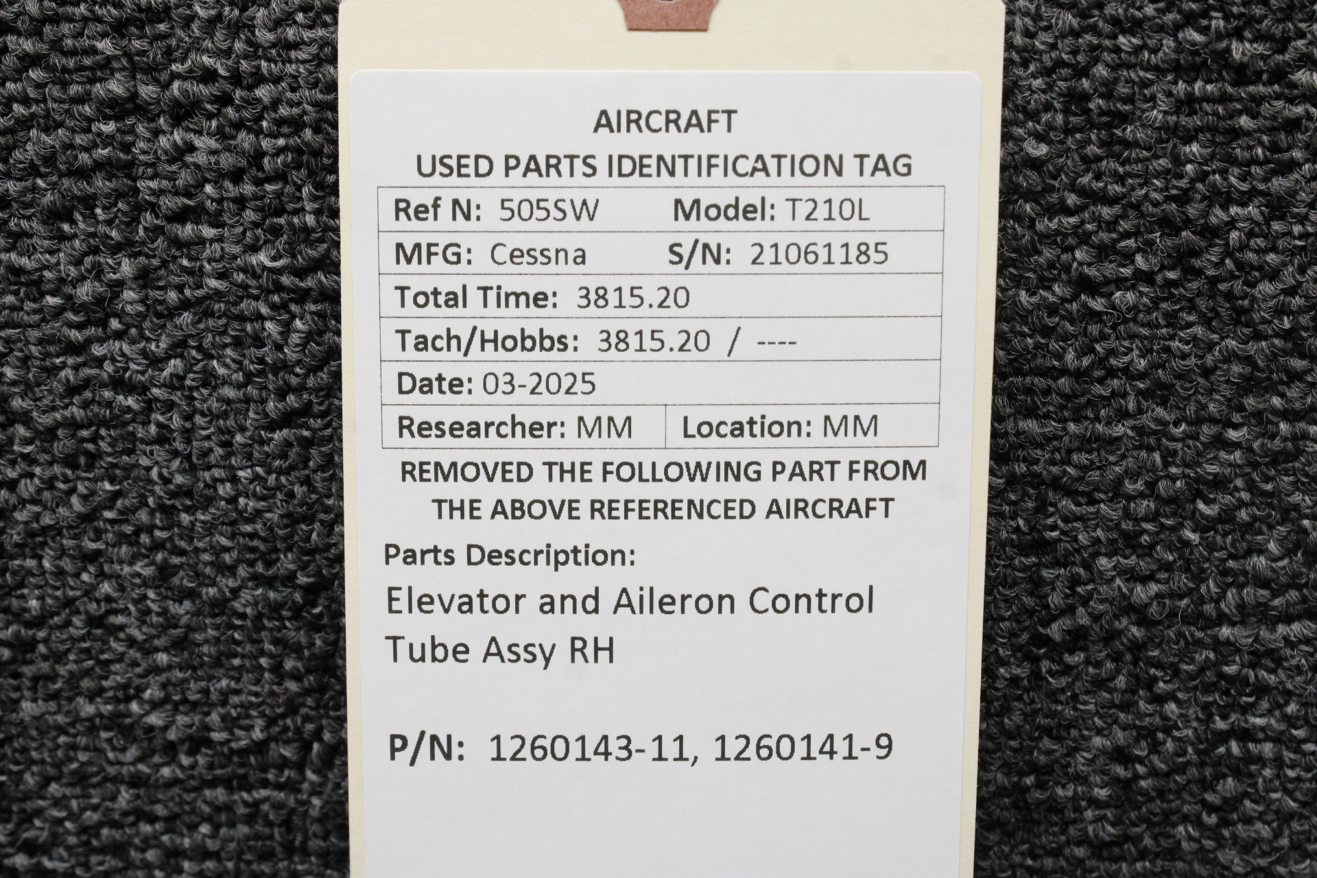 - Aileron Control Tube Assembly Part Number: 1260141-9