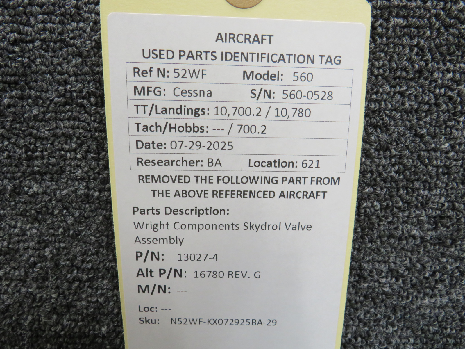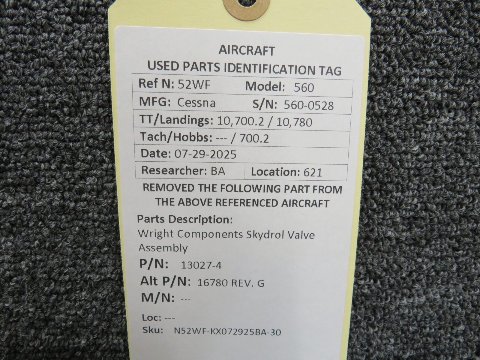 Every part is carefully inspected throughout our process and several times before it goes online. Most items are sold as-removed, just as they came off the aircraft. These parts are not functionally tested. What we do provide is clear photos, full traceability when available, pricing that reflects the as-removed condition, and a no-nonsense 90-day return window.