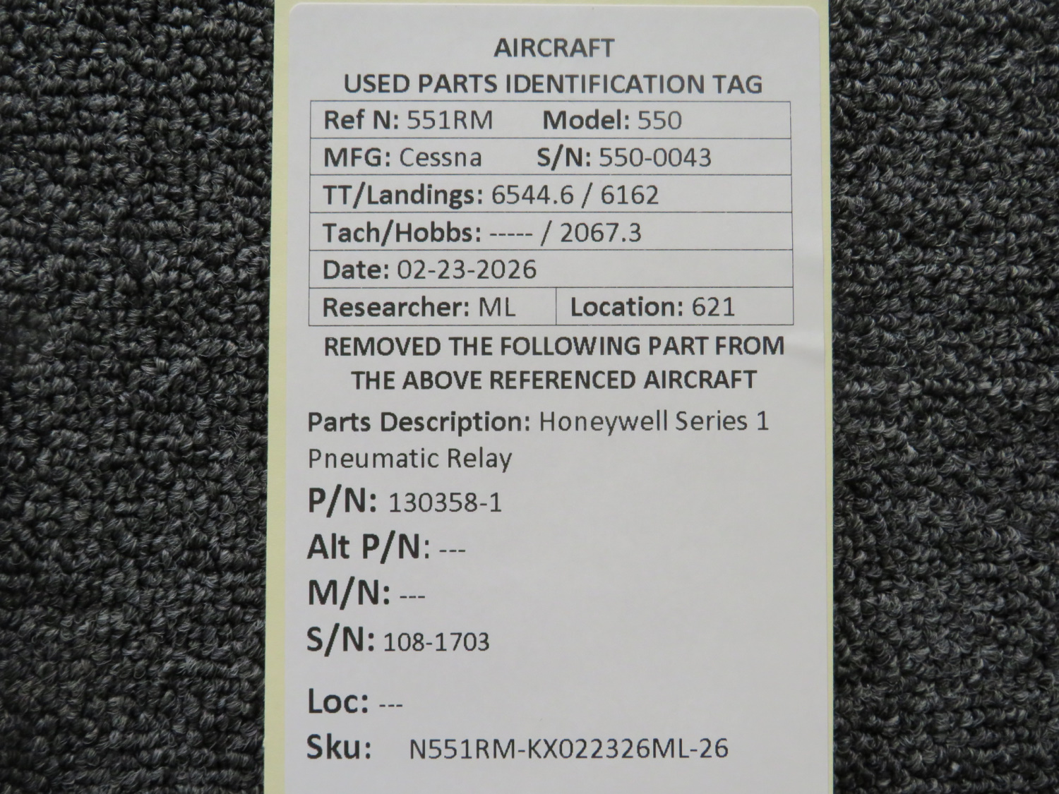 Every part is carefully inspected throughout our process and several times before it goes online. Most items are sold as-removed, just as they came off the aircraft. These parts are not functionally tested. What we do provide is clear photos, full traceability when available, pricing that reflects the as-removed condition, and a no-nonsense 90-day return window.