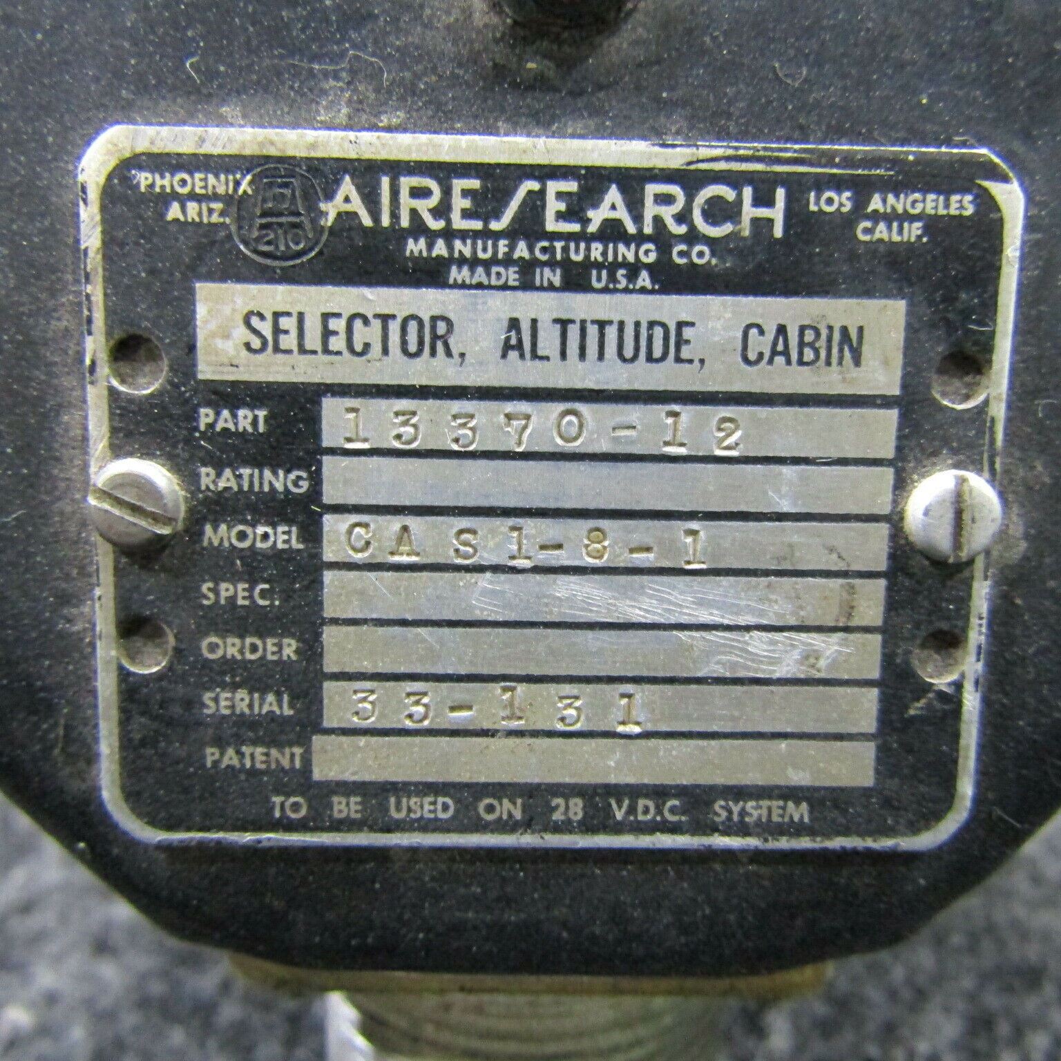 13370-12 Airesearch Cabin Altitude Selector