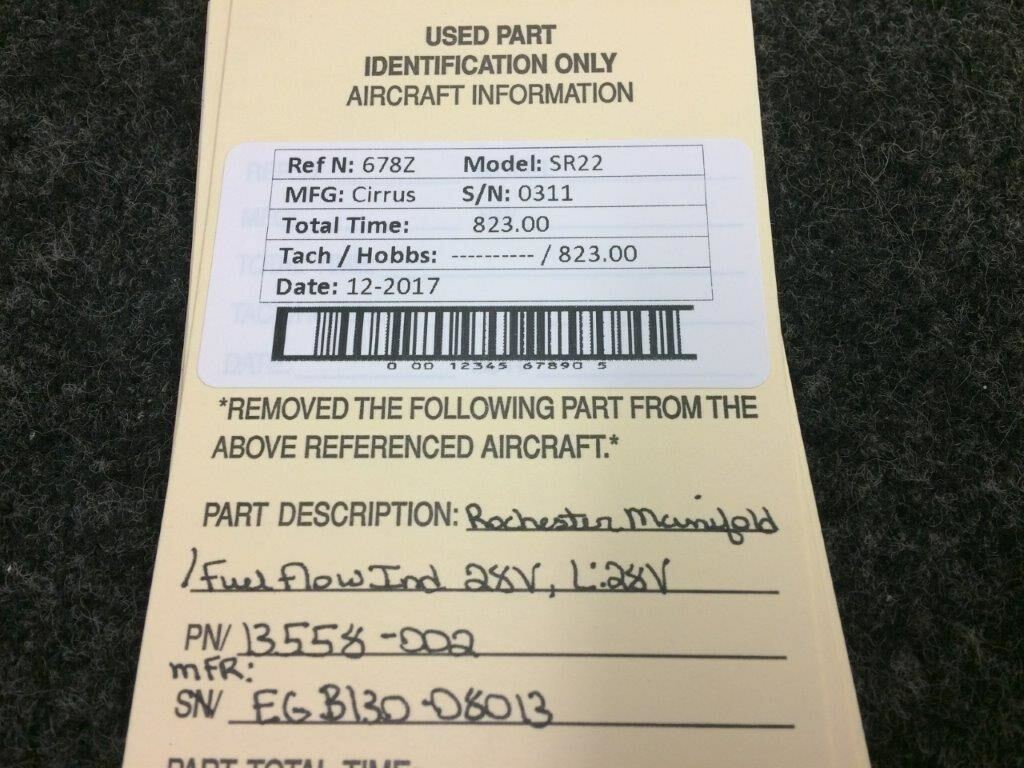 13558-002 (MFR P/N: EG3130-08013) Rochester Manifold / Fuel Flow Ind (V: 28)