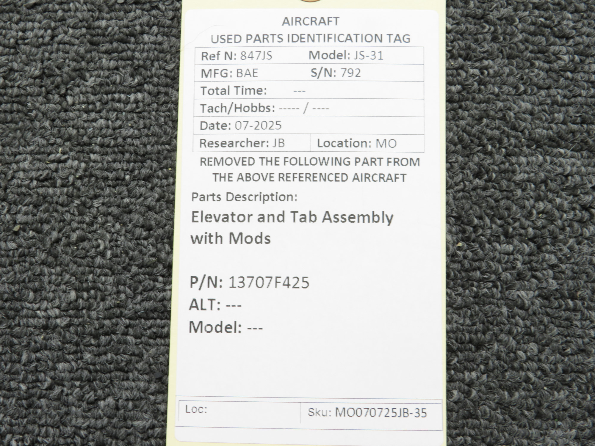 Unless specifically noted, most of our used airplane parts are sold in the condition they were removed, which means you should expect the usual signs of wear and tear.