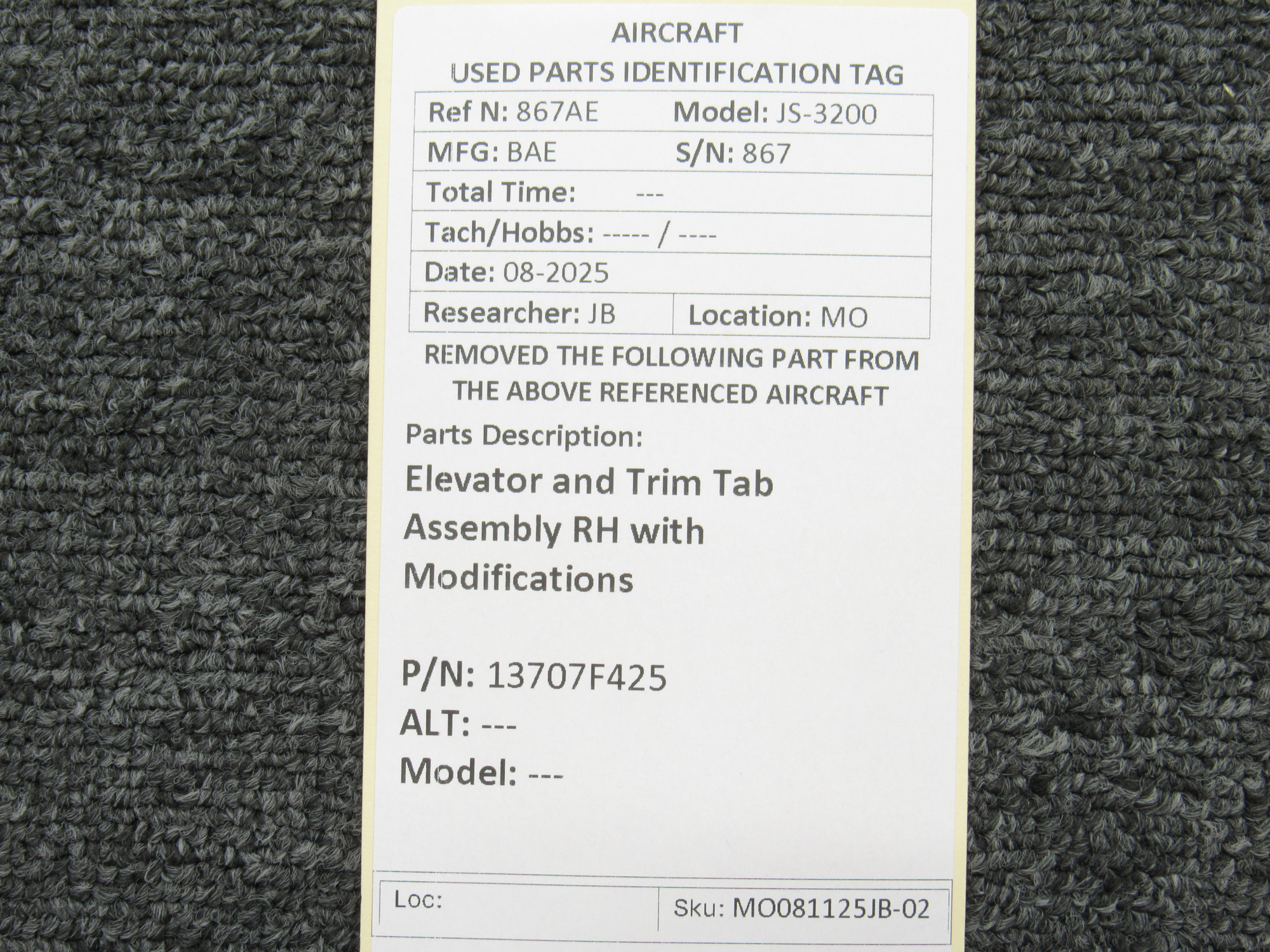 Unless specifically noted, most of our used airplane parts are sold in the condition they were removed, which means you should expect the usual signs of wear and tear.