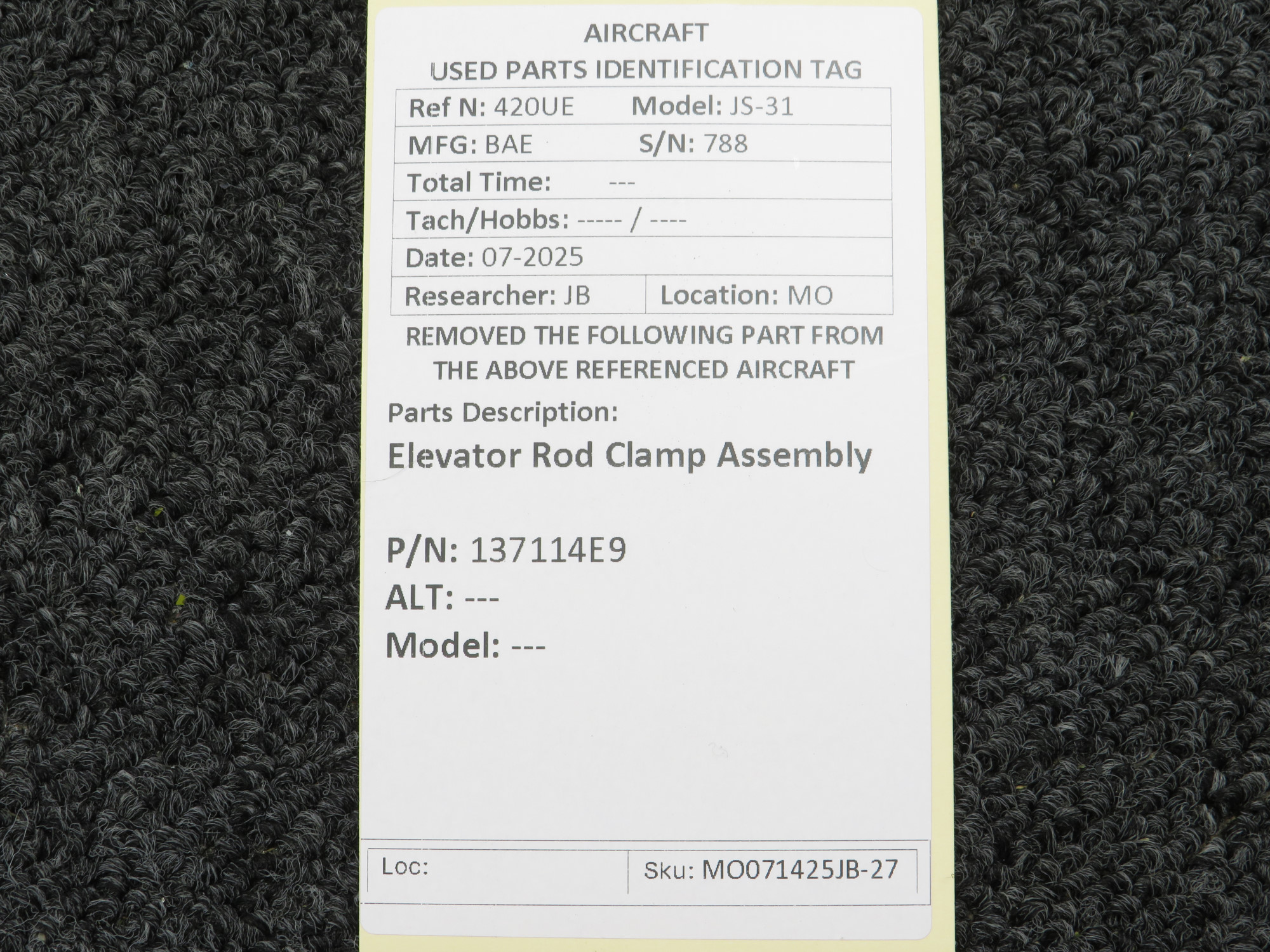 Unless specifically noted, most of our used airplane parts are sold in the condition they were removed, which means you should expect the usual signs of wear and tear.