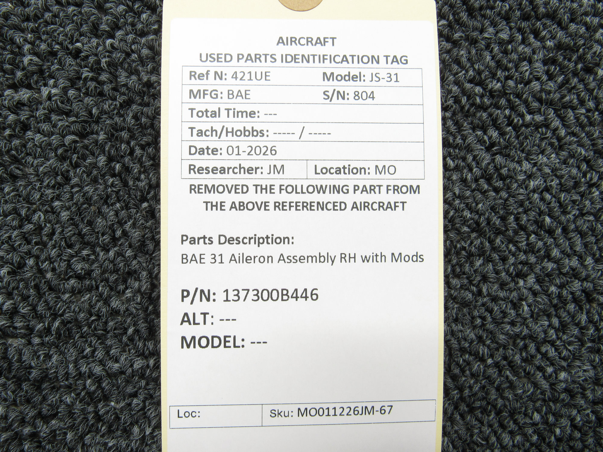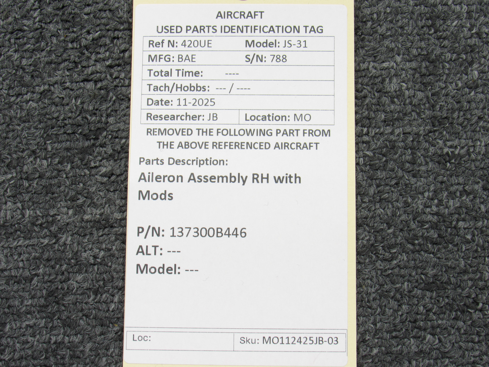 - MO112425JB-03AS - Has a patch on outboard trailing edge