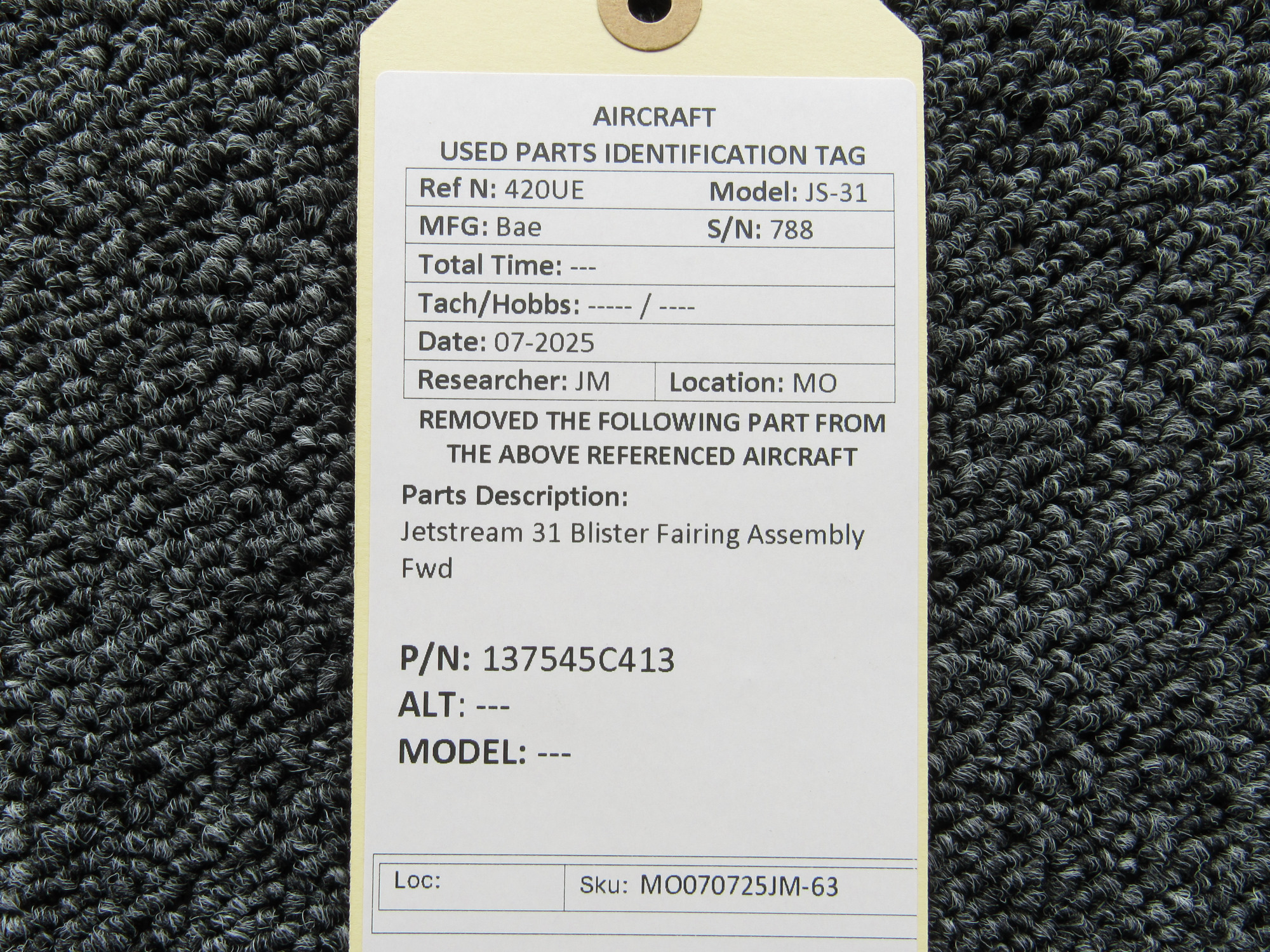 Unless specifically noted, most of our used airplane parts are sold in the condition they were removed, which means you should expect the usual signs of wear and tear.