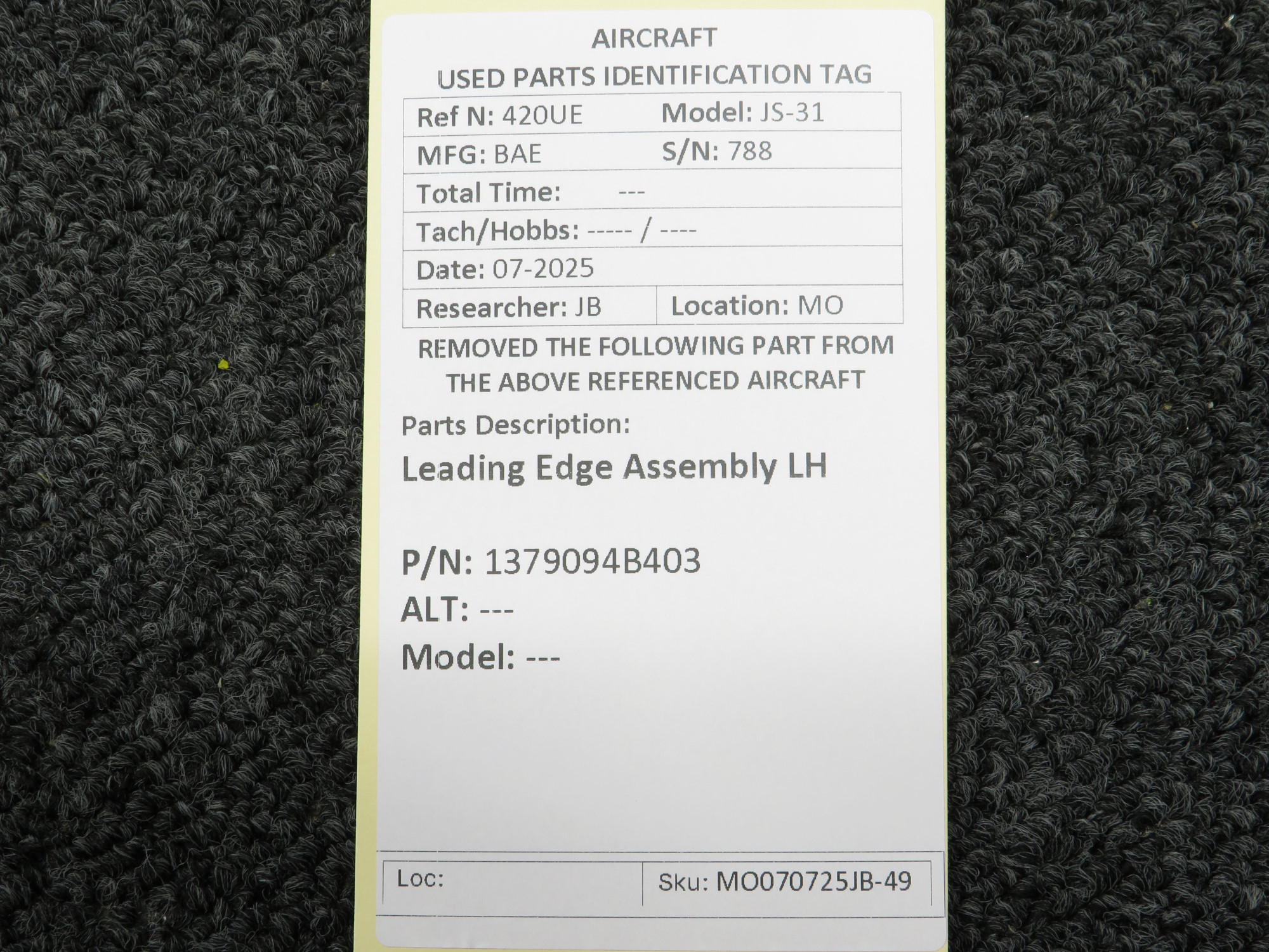 Unless specifically noted, most of our used airplane parts are sold in the condition they were removed, which means you should expect the usual signs of wear and tear.