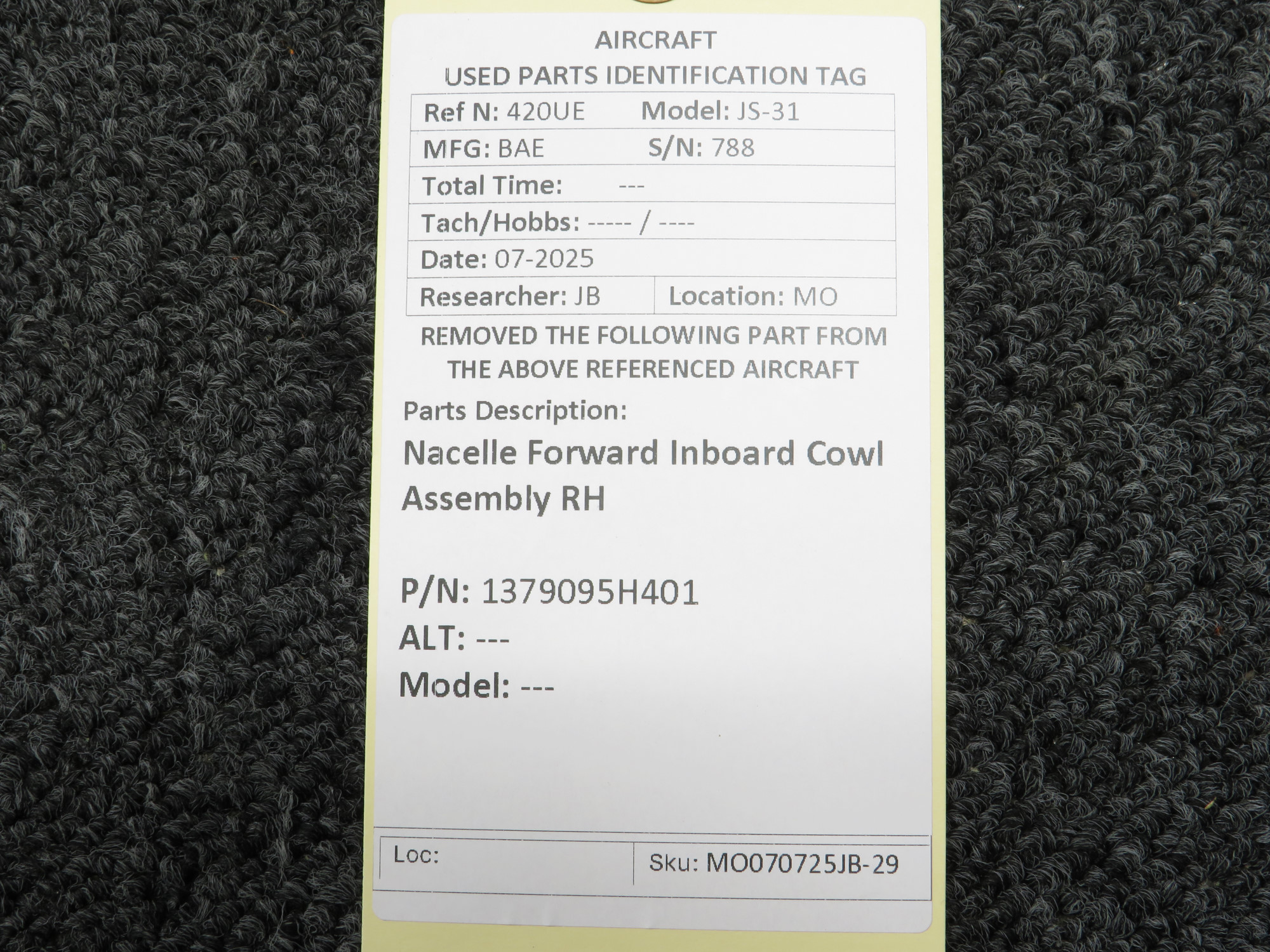 Unless specifically noted, most of our used airplane parts are sold in the condition they were removed, which means you should expect the usual signs of wear and tear.