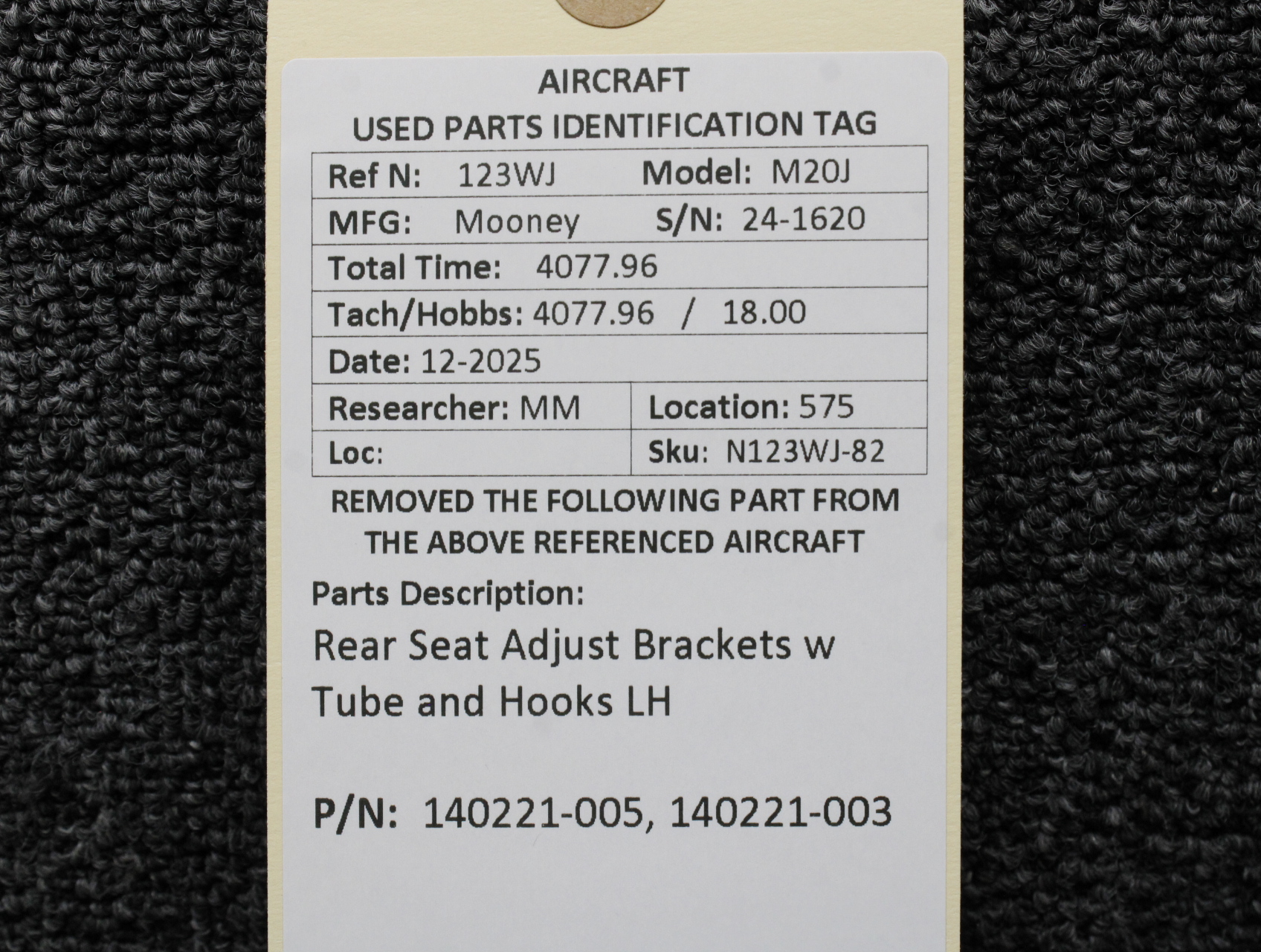 - LH Inboard Bracket Assembly Part Number: 140221-005