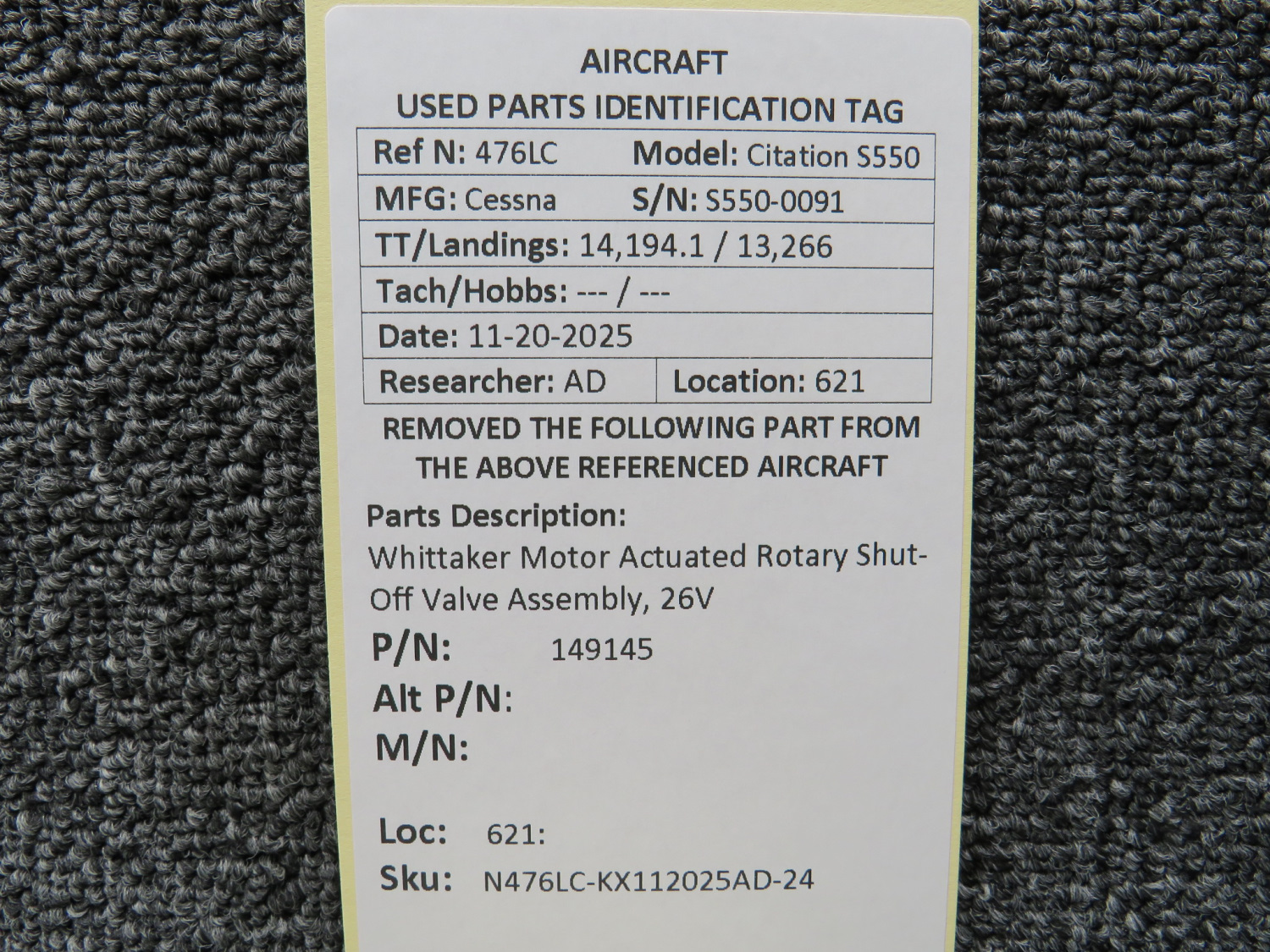 Every part is carefully inspected throughout our process and several times before it goes online. Most items are sold as-removed, just as they came off the aircraft. These parts are not functionally tested. What we do provide is clear photos, full traceability when available, pricing that reflects the as-removed condition, and a no-nonsense 90-day return window.