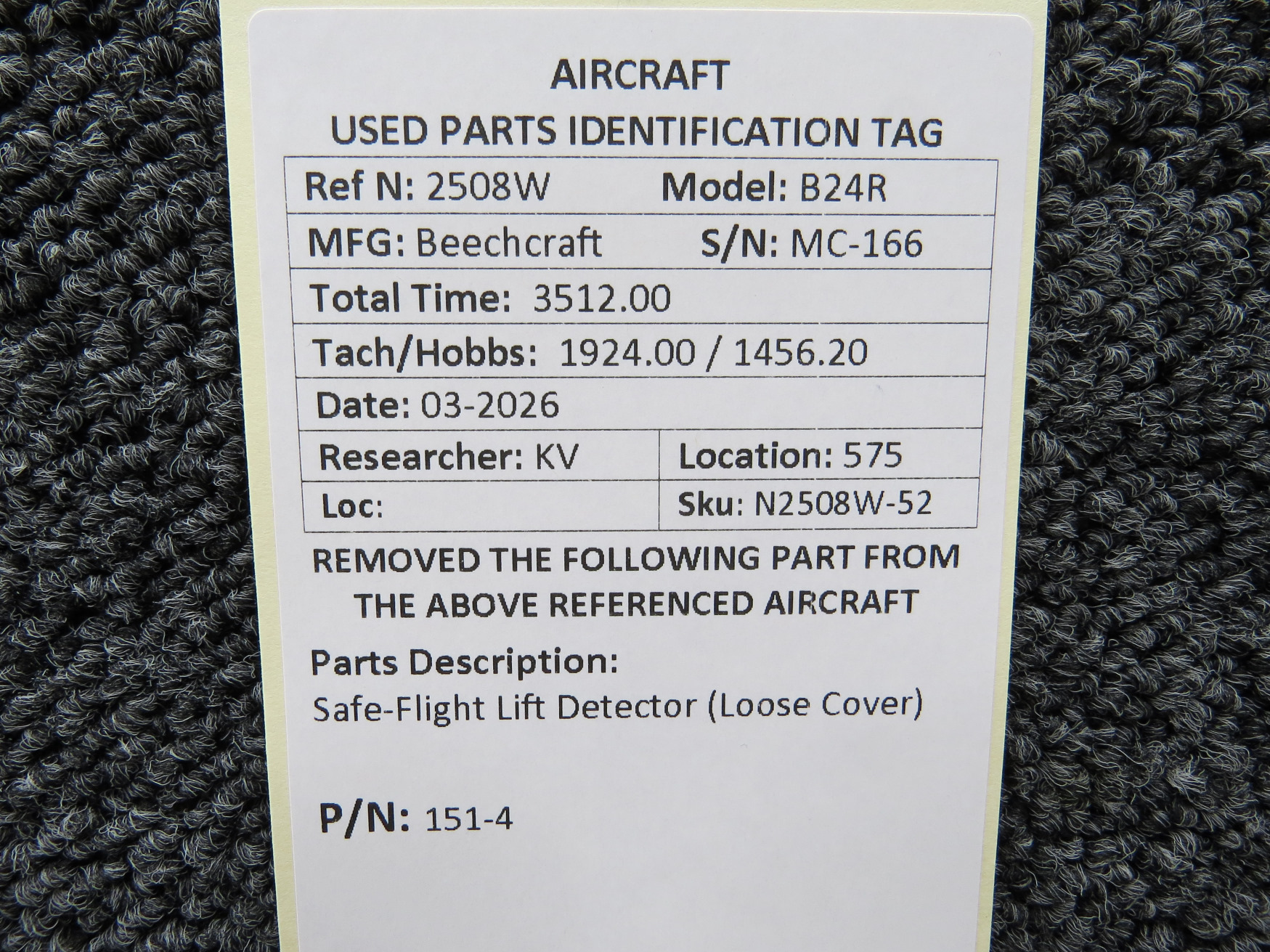 Every part is carefully inspected throughout our process and several times before it goes online. Most items are sold as-removed, just as they came off the aircraft. These parts are not functionally tested. What we do provide is clear photos, full traceability when available, pricing that reflects the as-removed condition, and a no-nonsense 90-day return window.