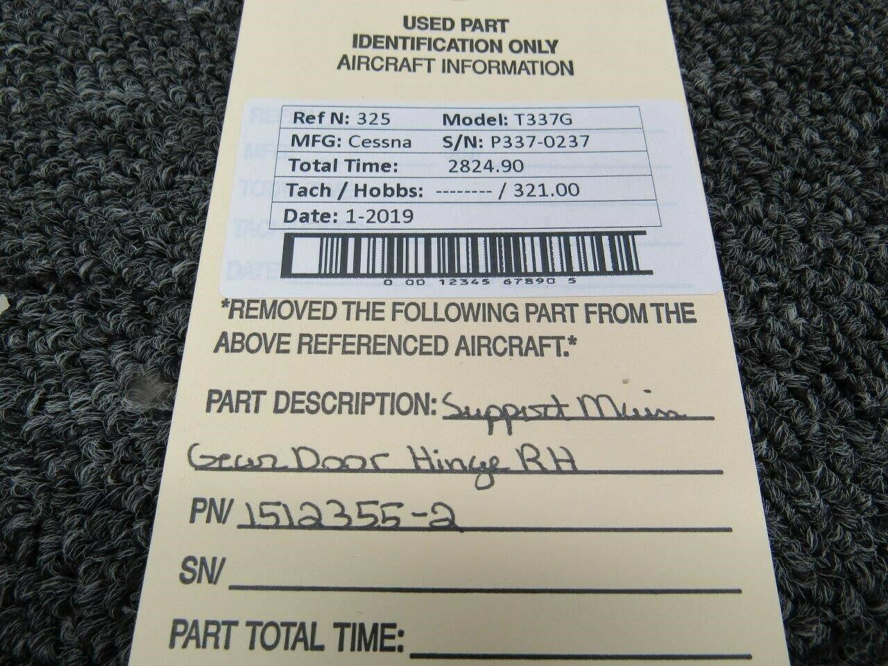 1512355-2 Cessna T337G Support Main Gear Door Hinge RH