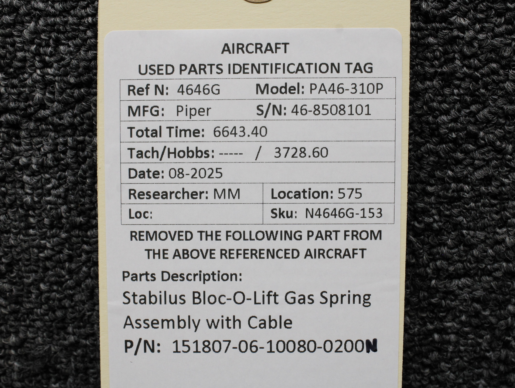 Unless specifically noted, most of our used airplane parts are sold in the condition they were removed, which means you should expect the usual signs of wear and tear.